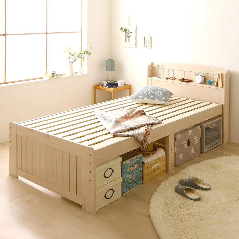 引き出しと高さ調整で床下収納のカントリー調棚付きベッド シングル ミドルタイプ[床下20~32cm] ナチュラル フレームのみ