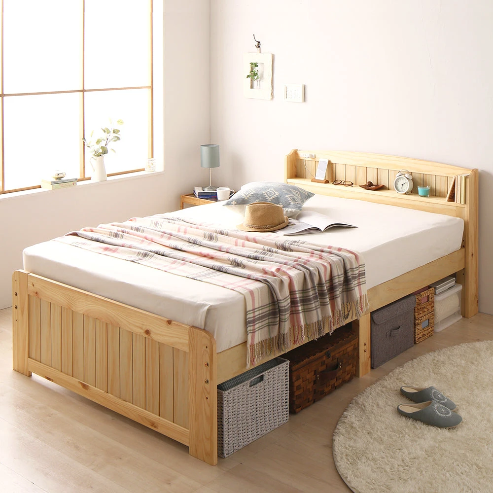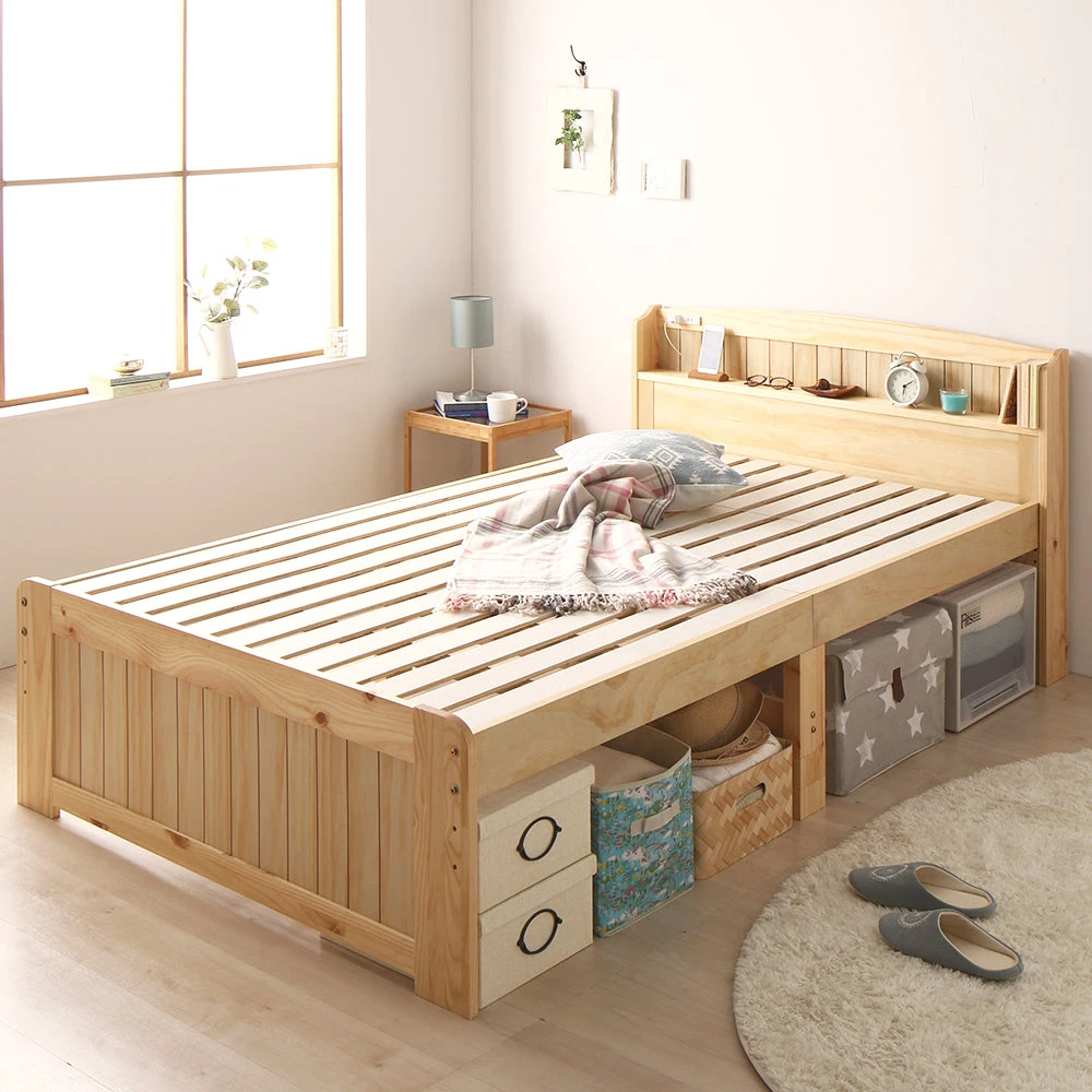 引き出しと高さ調整で床下収納のカントリー調棚付きベッド セミダブル ミドルタイプ[床下20~32cm] ナチュラル フレームのみ