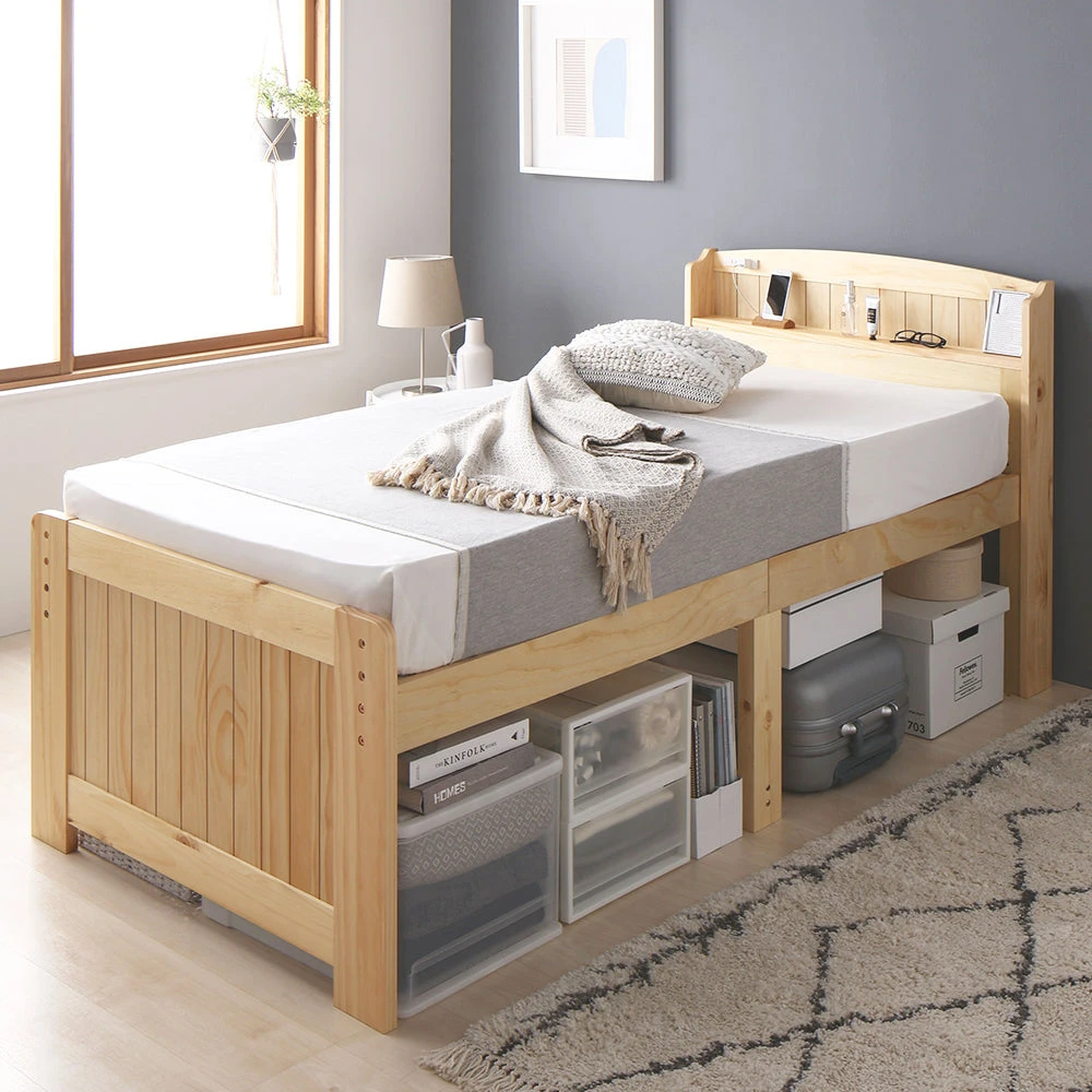 引き出しと高さ調整で床下収納のカントリー調棚付きベッド シングル ミドルタイプ[床下20~32cm] ナチュラル ポケットコイルマットレス付き