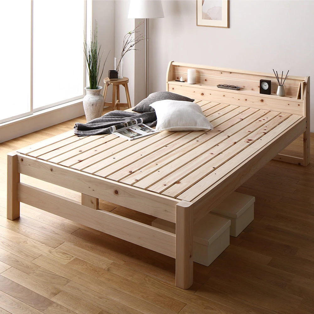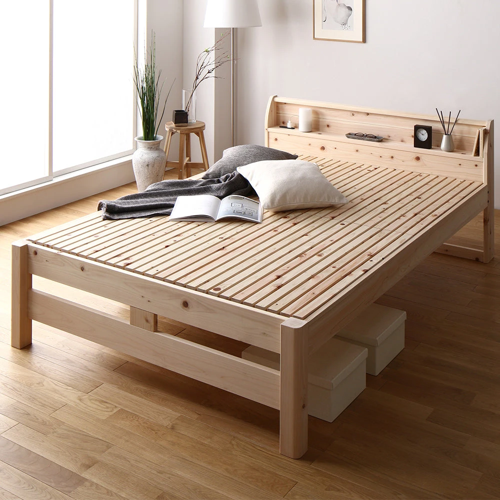 通気と耐久に配慮し長く心地よく使える国産ひのき頑丈すのこベッド ダブル 通常すのこタイプ フレームのみ