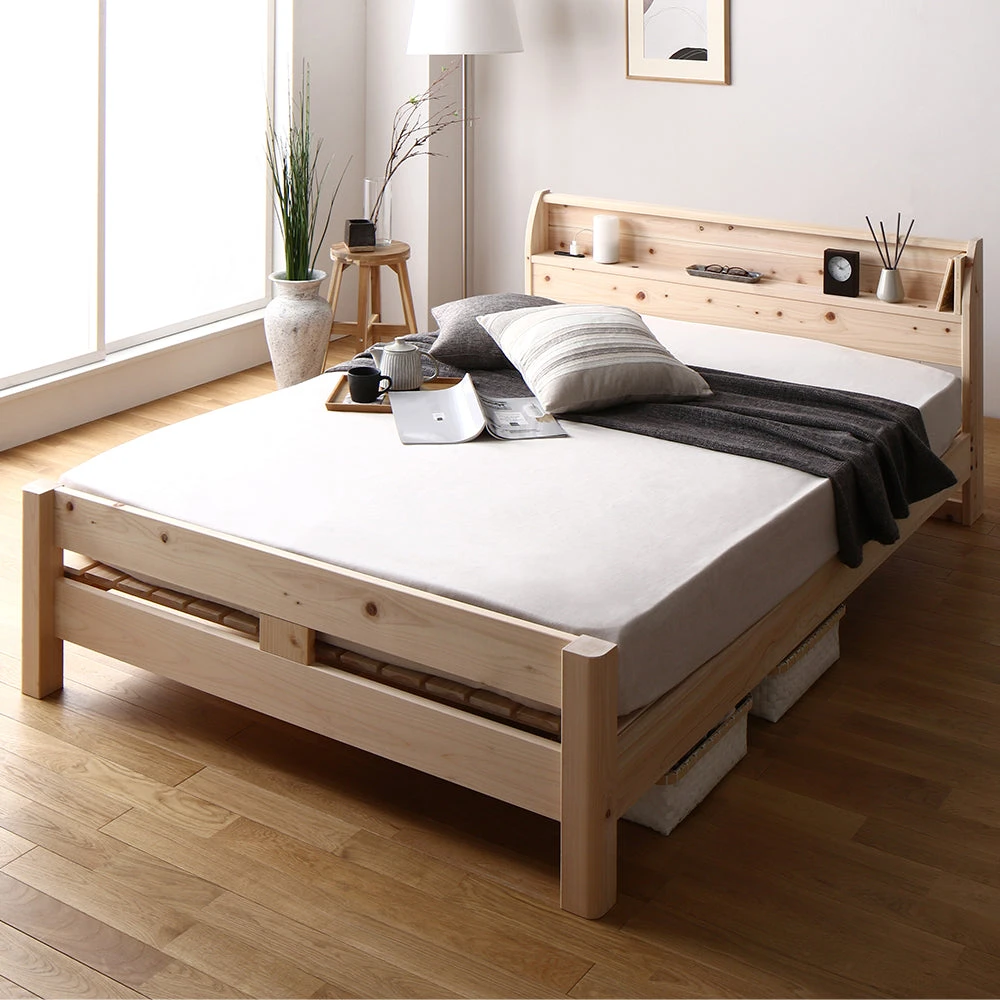 通気と耐久に配慮し長く心地よく使える国産ひのき頑丈すのこベッド セミダブル 通常すのこタイプ 日本製プレミアムマットレス付き