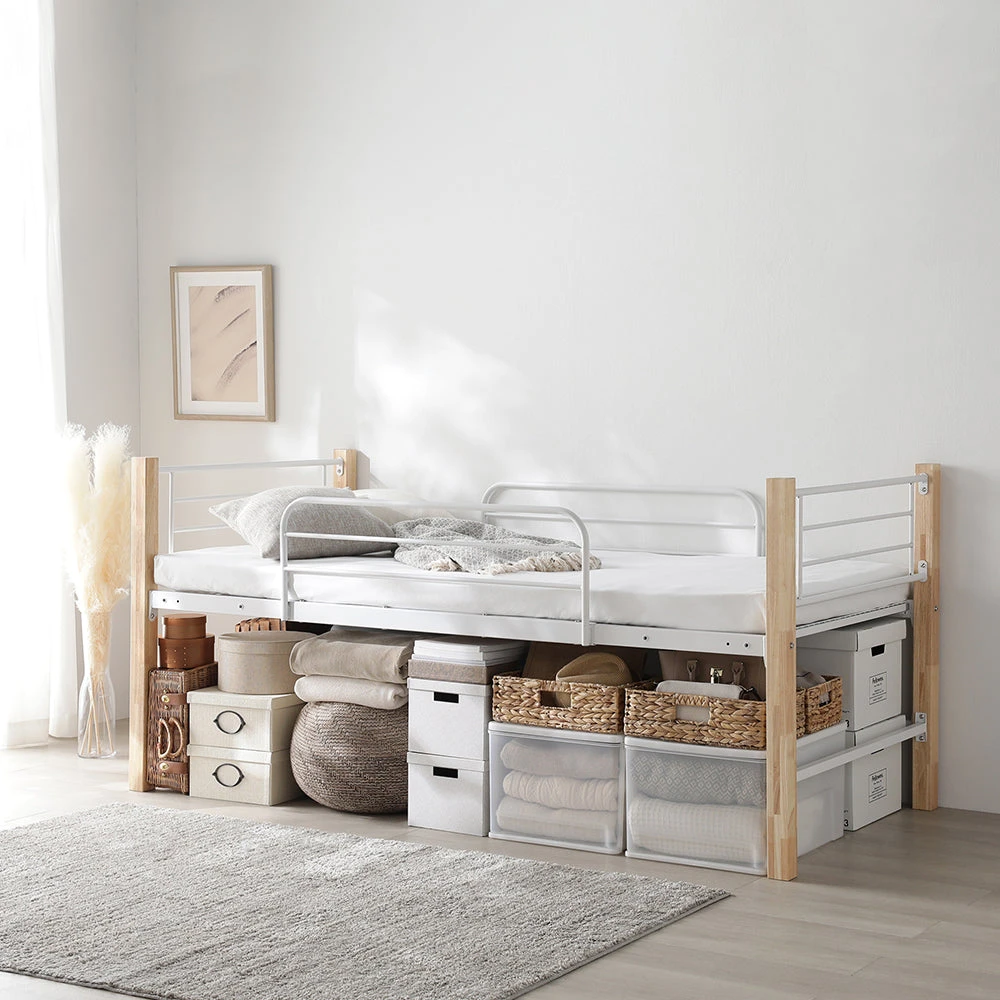 高さを選べて下部空間を賢く活用できるロフトベッド シングル ナチュラル×ホワイト ベッドフレームのみ ロータイプ