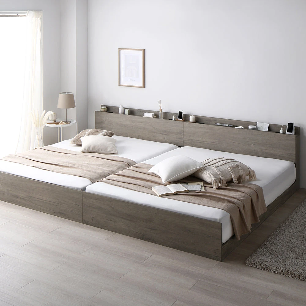 低めで広く見える空間設計と静かな使い心地の高さ調整すのこベッド シングル グレージュ 2層ポケットコイルマットレス付き