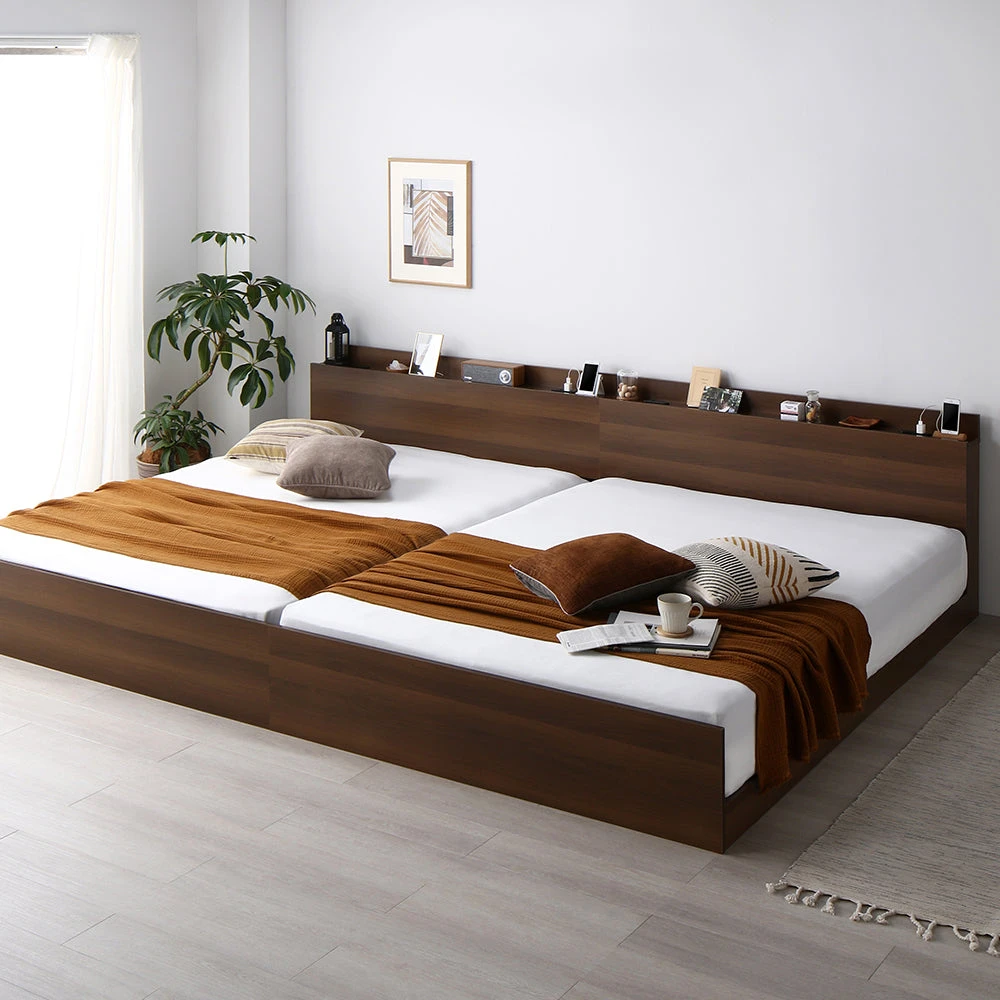 低めで広く見える空間設計と静かな使い心地の高さ調整すのこベッド シングル ブラウン 国産ポケットコイルマットレス付き(レギュラー)