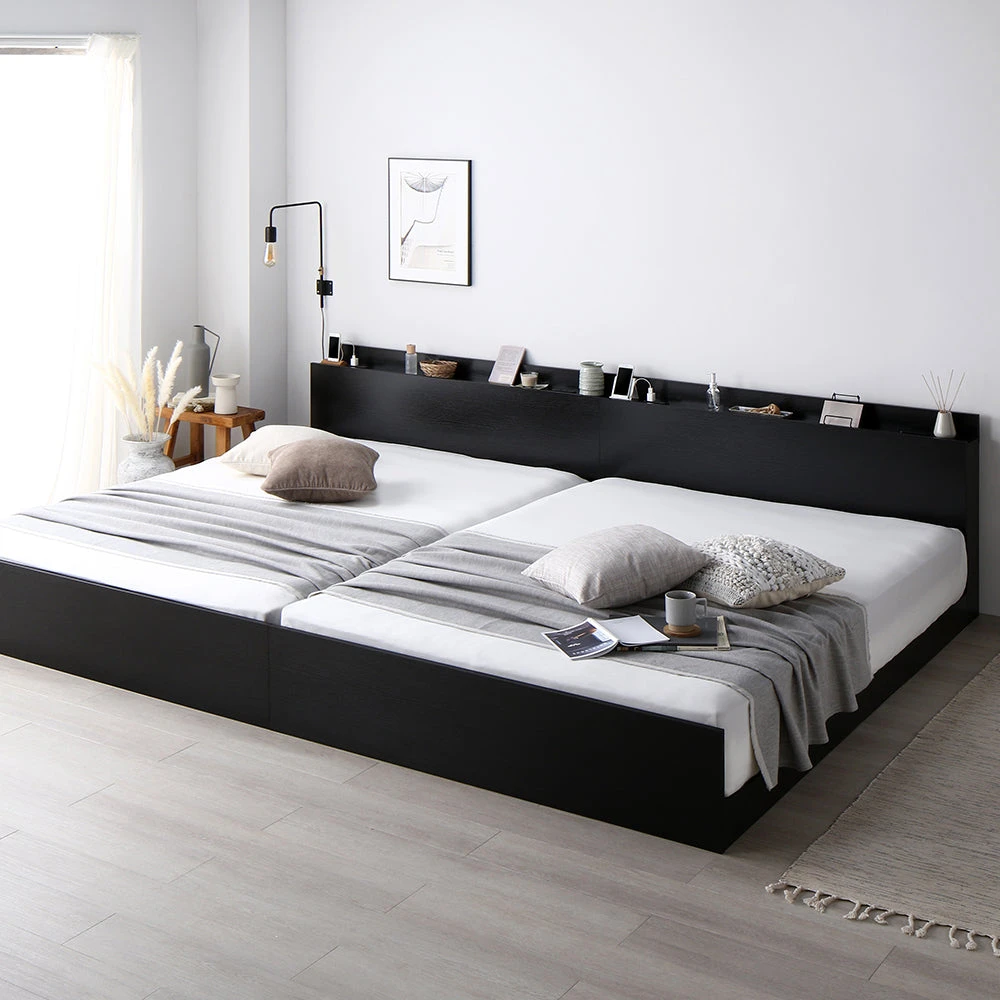 低めで広く見える空間設計と静かな使い心地の高さ調整すのこベッド シングル ブラック 3ゾーンポケットコイルマットレス付き