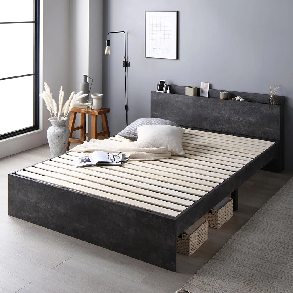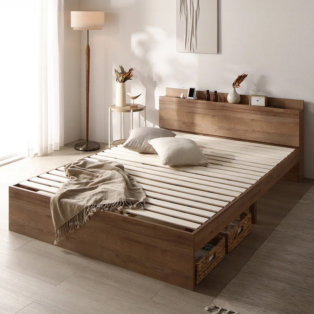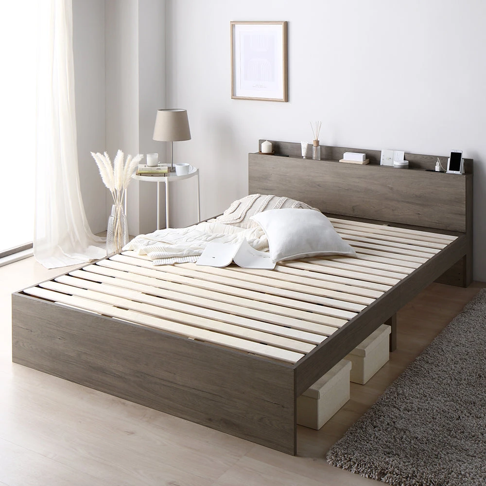 低めで広く見える空間設計と静かな使い心地の高さ調整すのこベッド シングル シャビーオーク ベッドフレームのみ
