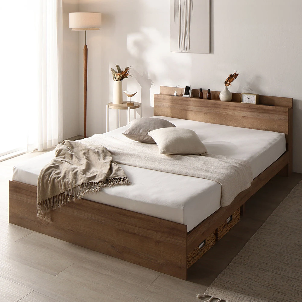 低めで広く見える空間設計と静かな使い心地の高さ調整すのこベッド シングル シャビーオーク ポケットコイルマットレス付き