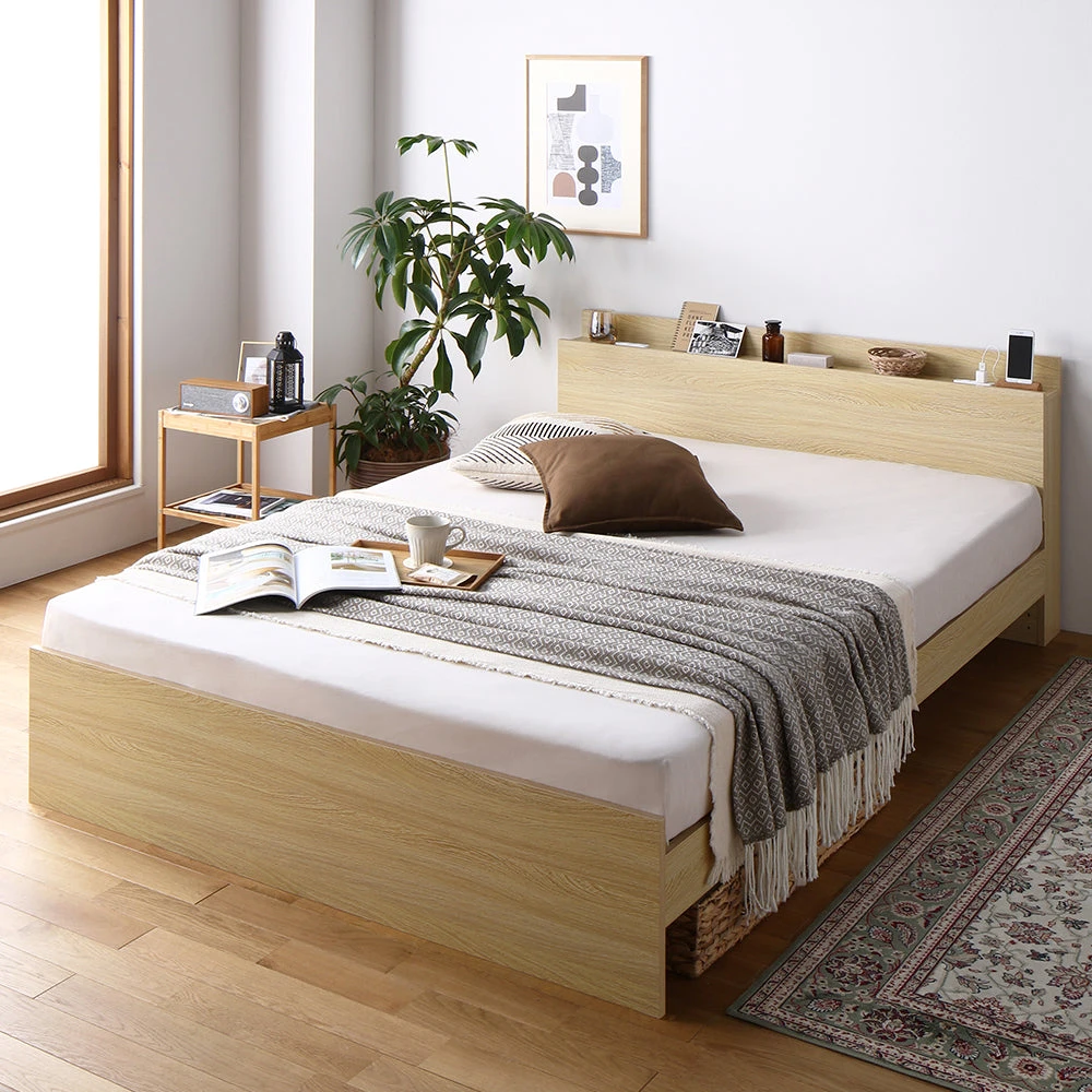 低めで広く見える空間設計と静かな使い心地の高さ調整すのこベッド シングル ナチュラル 国産ポケットコイルマットレス付き(レギュラー)