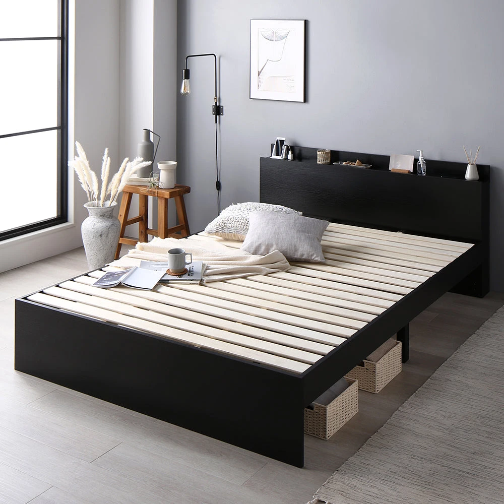 低めで広く見える空間設計と静かな使い心地の高さ調整すのこベッド シングル ブラック ベッドフレームのみ