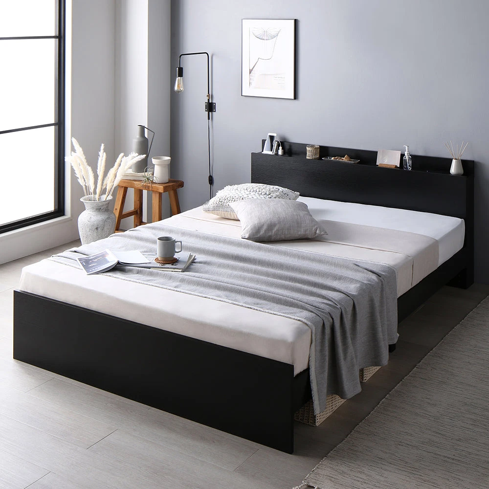 低めで広く見える空間設計と静かな使い心地の高さ調整すのこベッド シングル ブラック ボンネルコイルマットレス付き