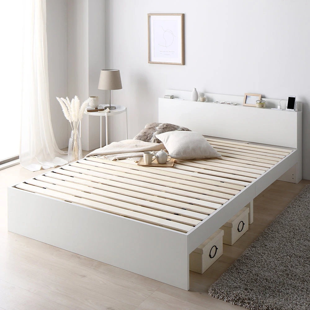 低めで広く見える空間設計と静かな使い心地の高さ調整すのこベッド シングル ホワイト ベッドフレームのみ