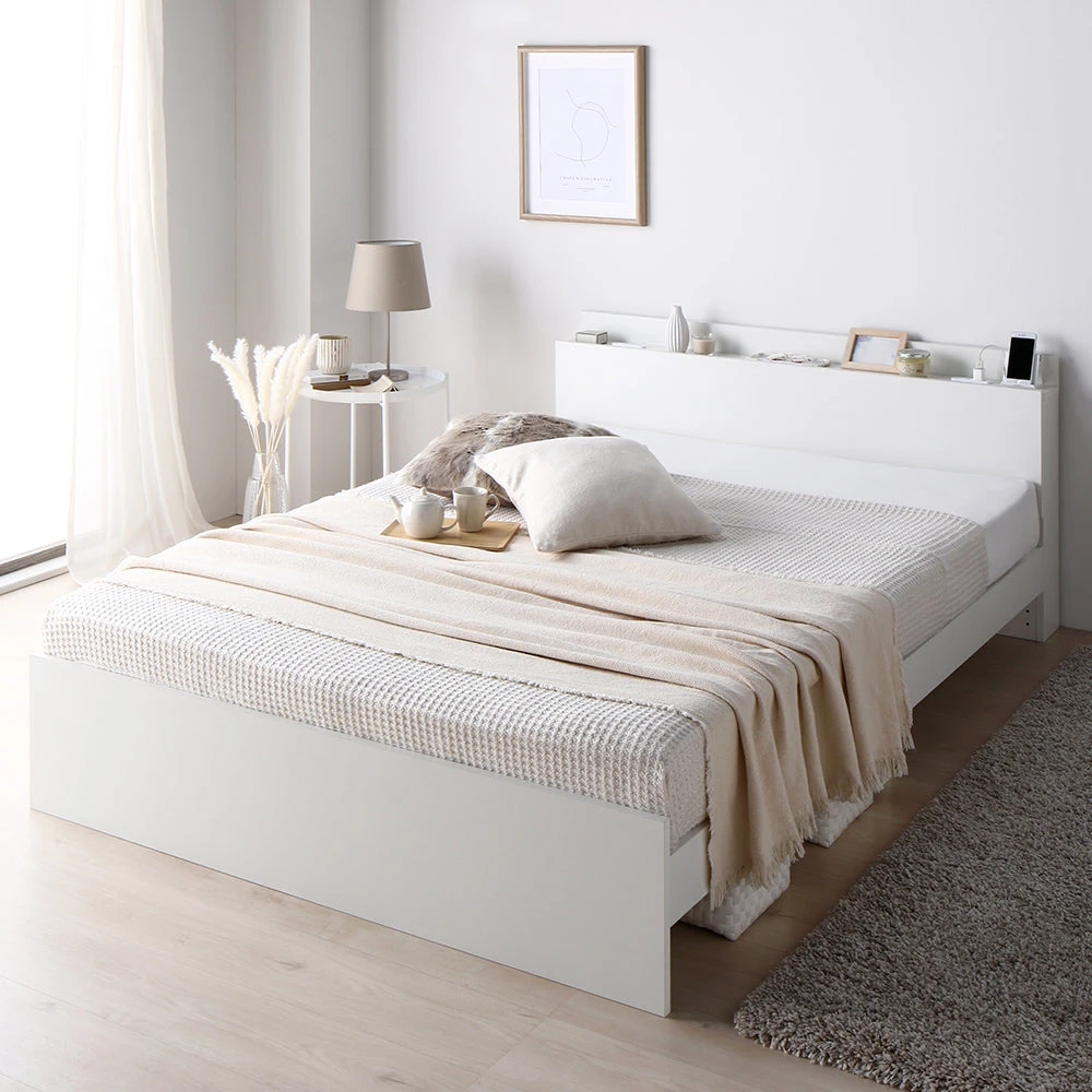 低めで広く見える空間設計と静かな使い心地の高さ調整すのこベッド シングル ホワイト ポケットコイルマットレス付き