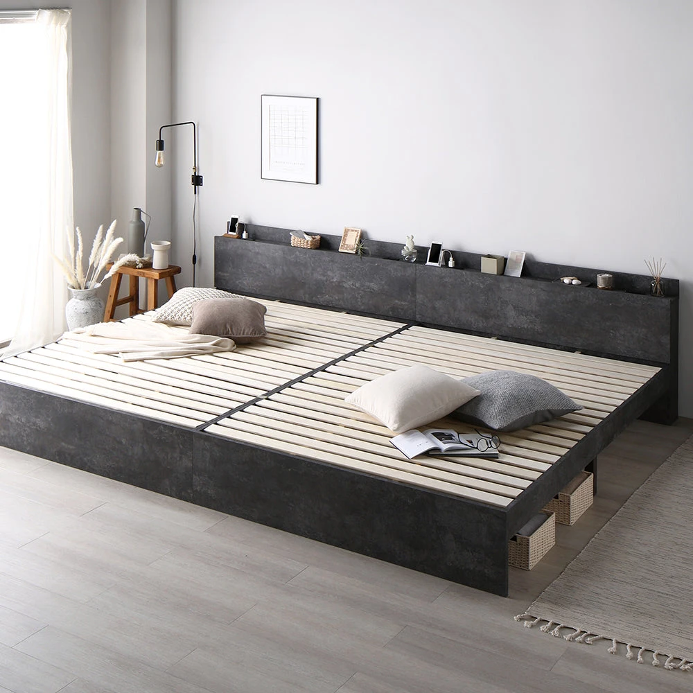 低めで広く見える空間設計と静かな使い心地の高さ調整すのこベッド ワイドキング280cm(D+D) ストーングレー ベッドフレームのみ