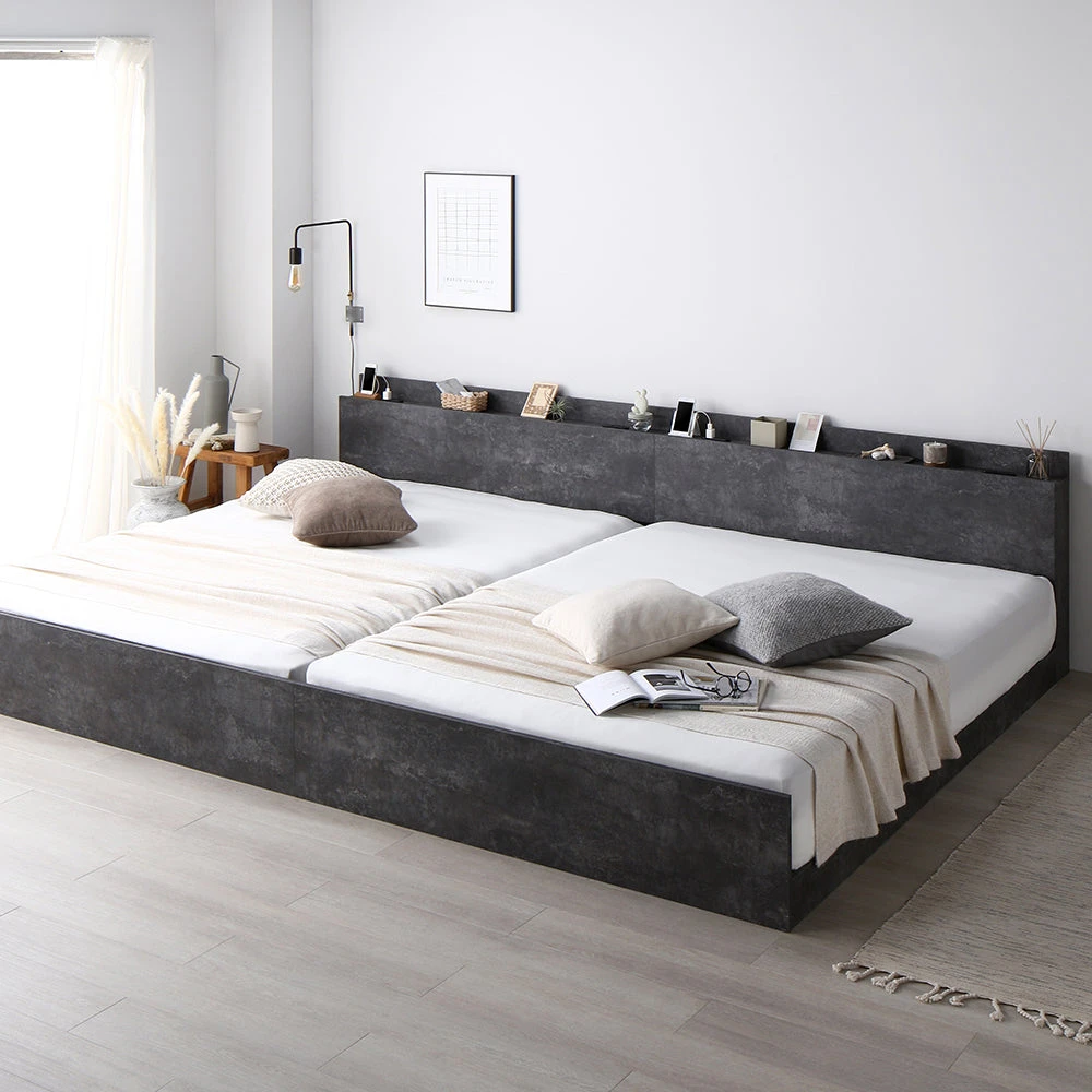 低めで広く見える空間設計と静かな使い心地の高さ調整すのこベッド ワイドキング280cm(D+D) ストーングレー ポケットコイルマットレス付き