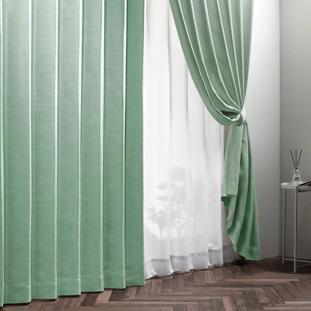上品な艶としなやかな手触りで美しさが続く国産1級・2級遮光カーテン 幅100cm(2枚入り) エメラルドグリーン(青磁) 丈100cm