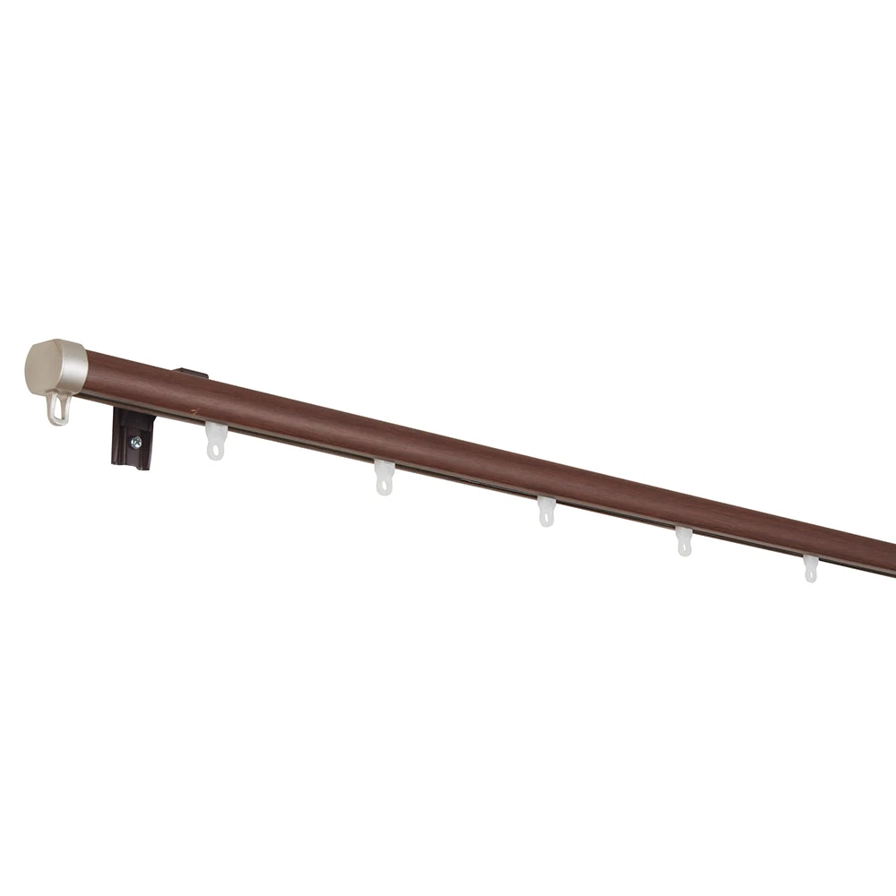 木目のやさしさで窓辺が広く見える伸縮カーテンレール シングル 2mセット 木目ブラウン