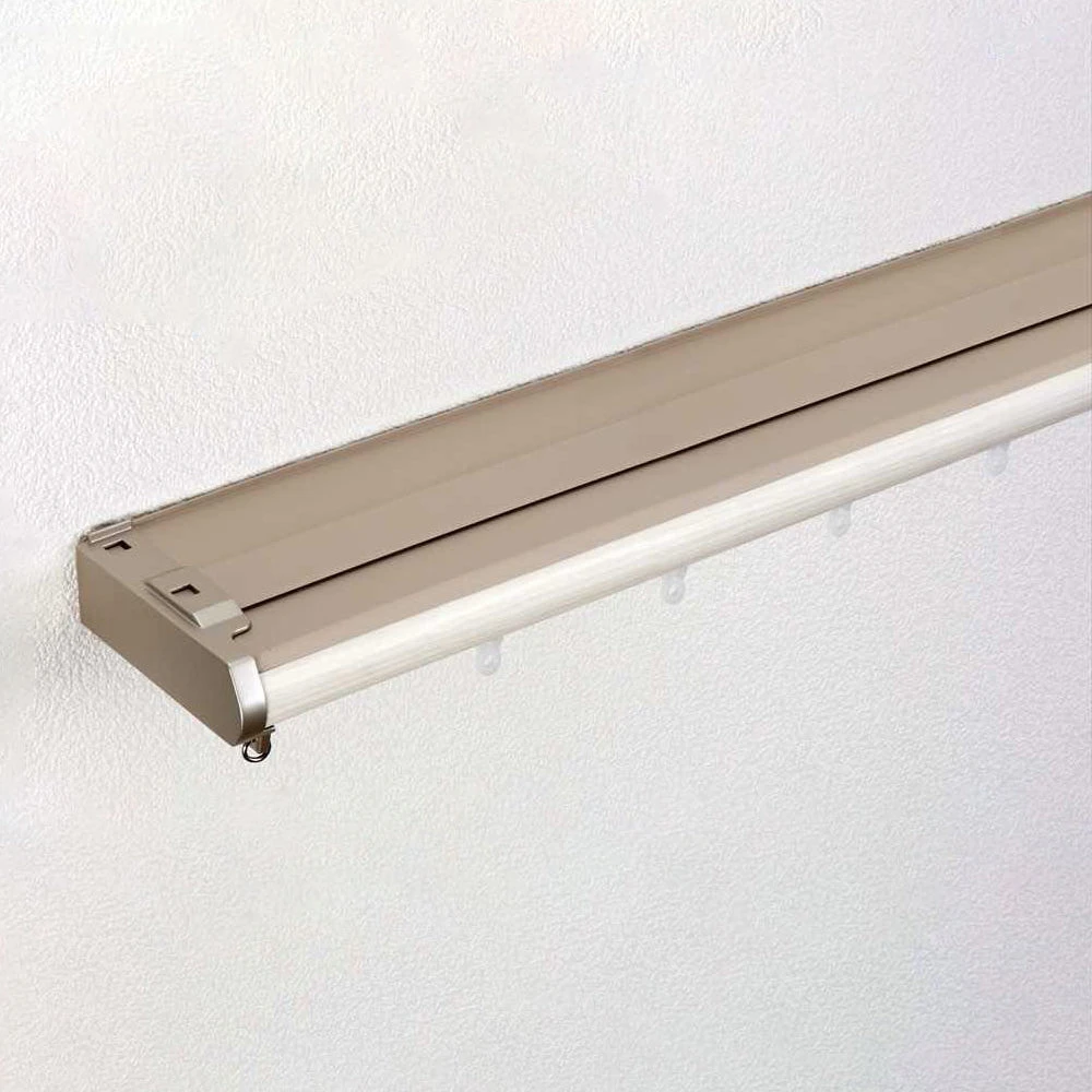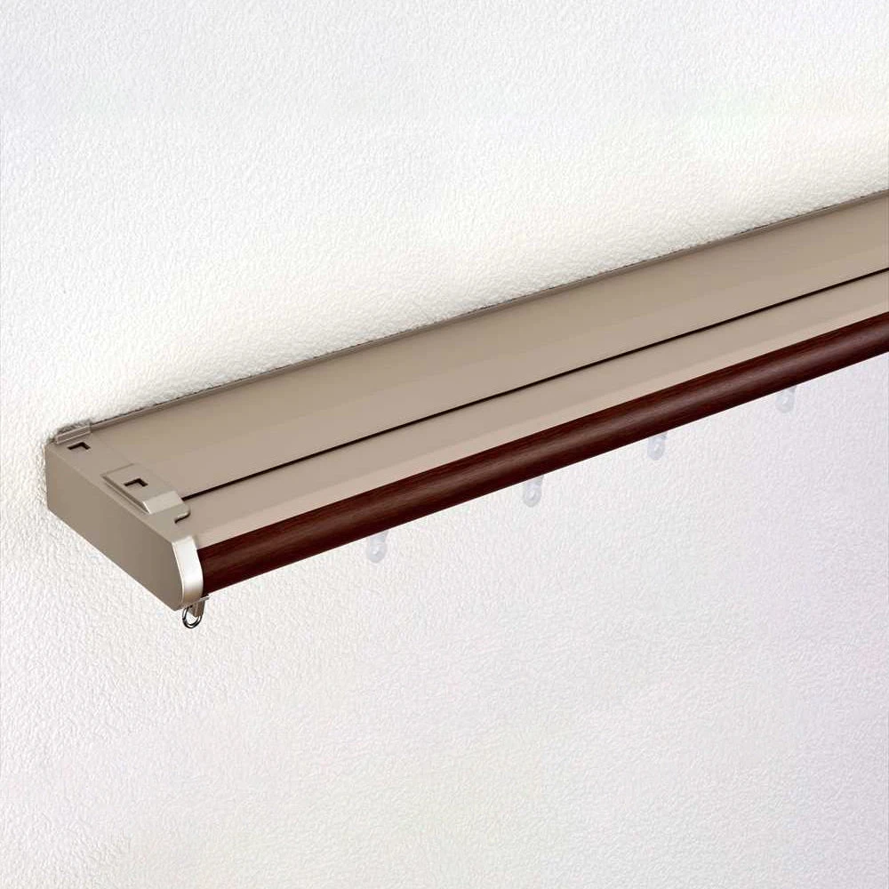 木目のやさしさで窓辺が広く見える伸縮カーテンレール 3mセット ダブル(リターン仕様・カバー付き) 木目ブラウン