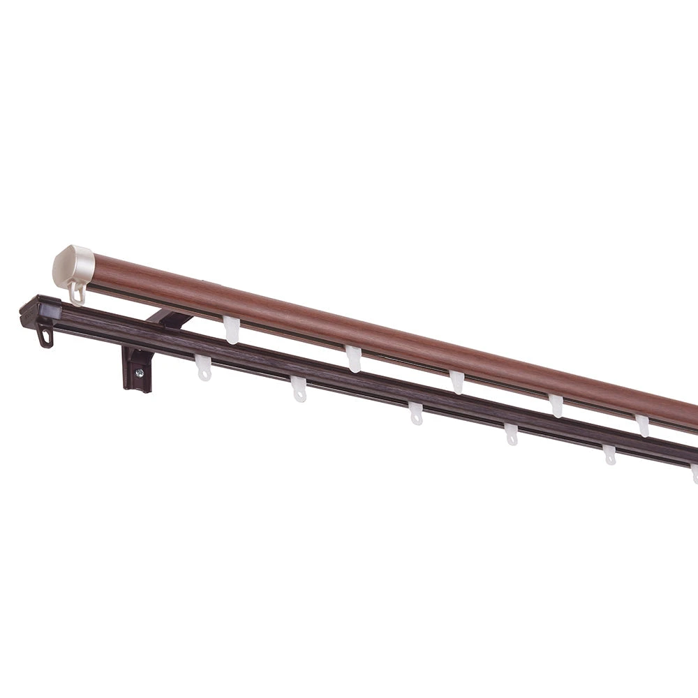 木目のやさしさで窓辺が広く見える伸縮カーテンレール 3mセット ダブル(リターン仕様) 木目ブラウン