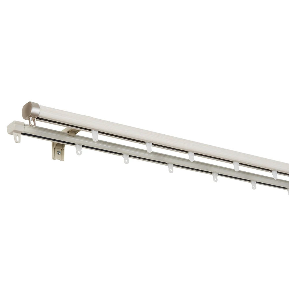 木目のやさしさで窓辺が広く見える伸縮カーテンレール ダブル 3mセット 木目ホワイト