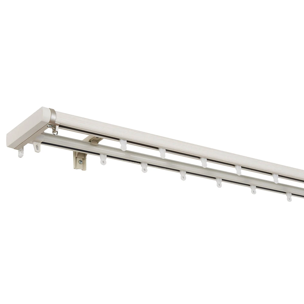 木目のやさしさで窓辺が広く見える伸縮カーテンレール 3mセット ダブル(リターン仕様) 木目ホワイト