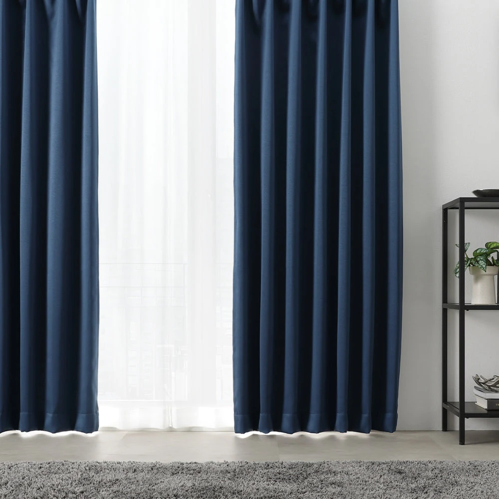 上質な光沢と一級遮光で昼夜の快適をつくるすぐに使えるカーテンセット 幅100cm ミッドナイトネイビー 丈105cm