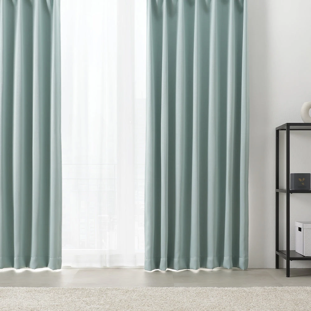 上質な光沢と一級遮光で昼夜の快適をつくるすぐに使えるカーテンセット 幅100cm セージグリーン 丈190cm