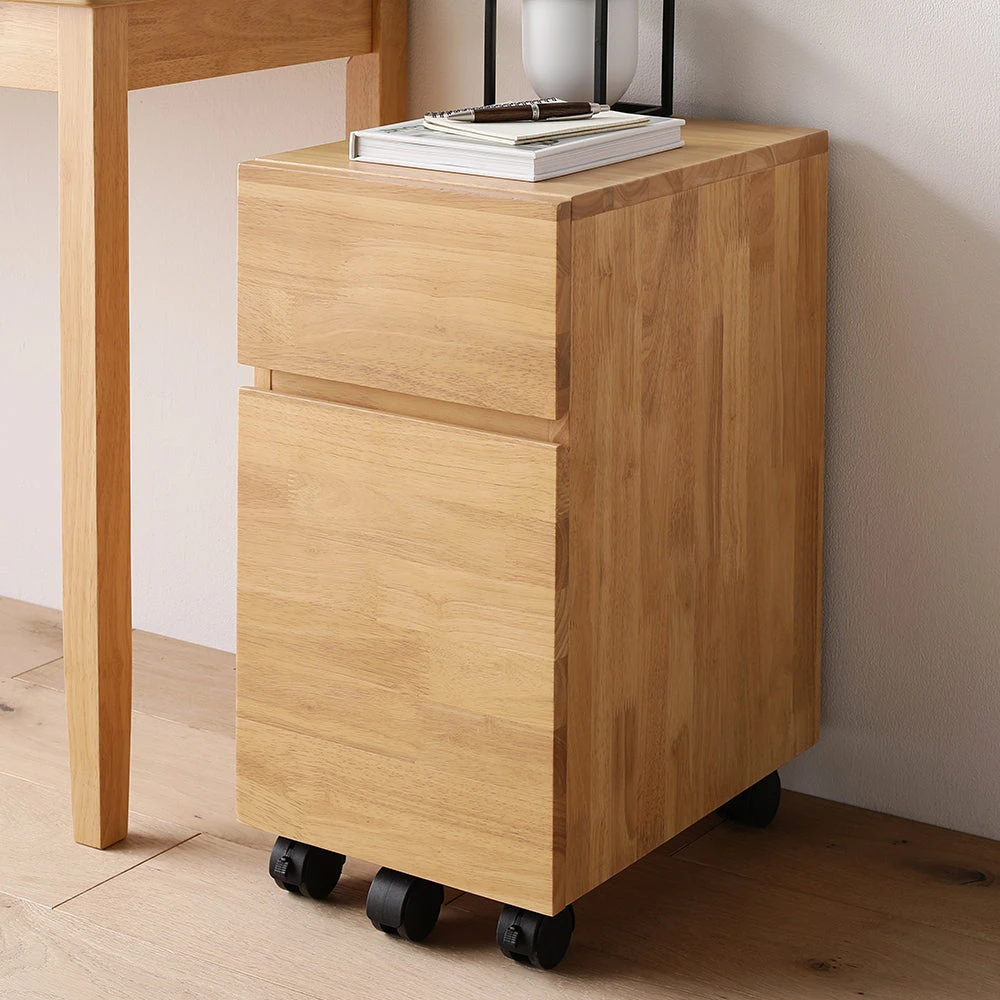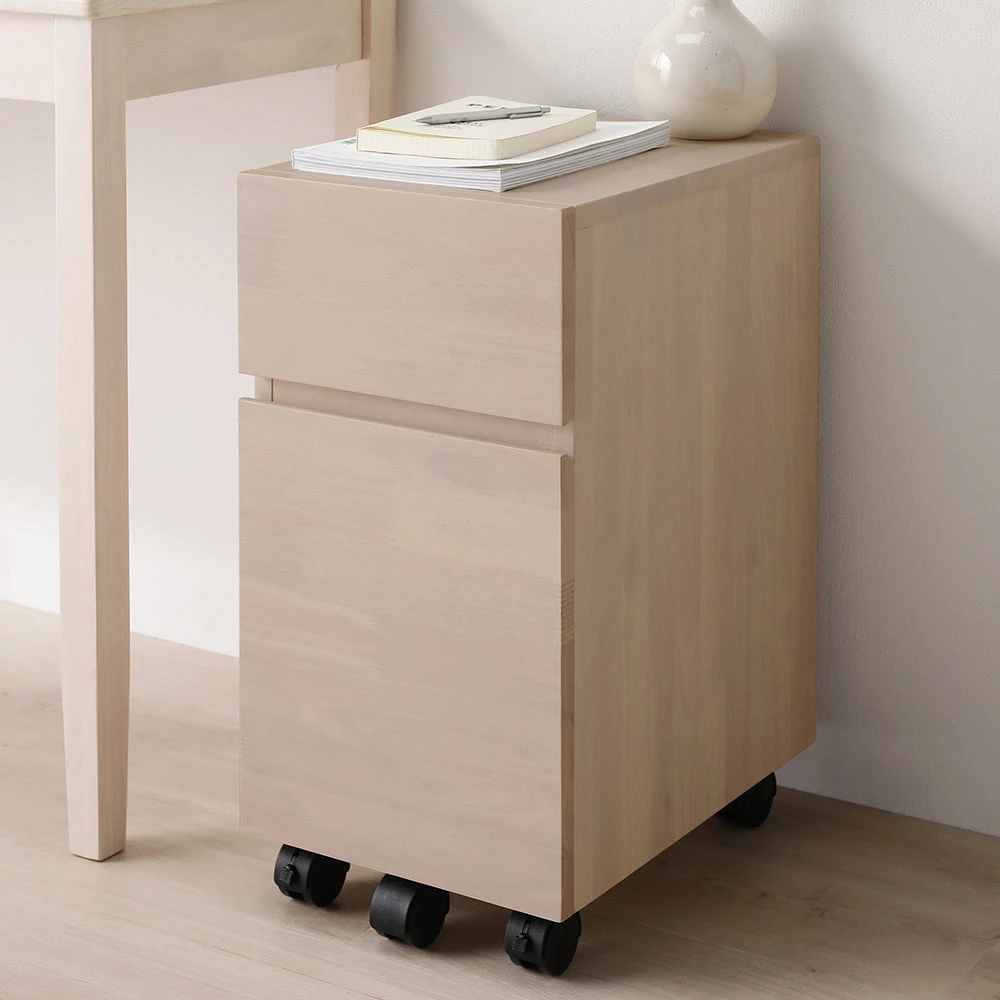 場所をとらず心地よく使えてサイズが選べる天然木デスク キャビネット単品 ナチュラル