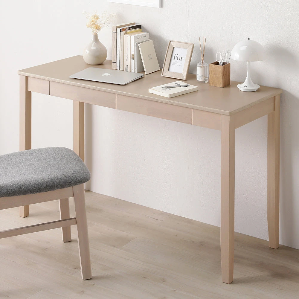 場所をとらず心地よく使えてサイズが選べる天然木デスク デスク単品(幅120cm) ラテホワイト 数量限定カラー