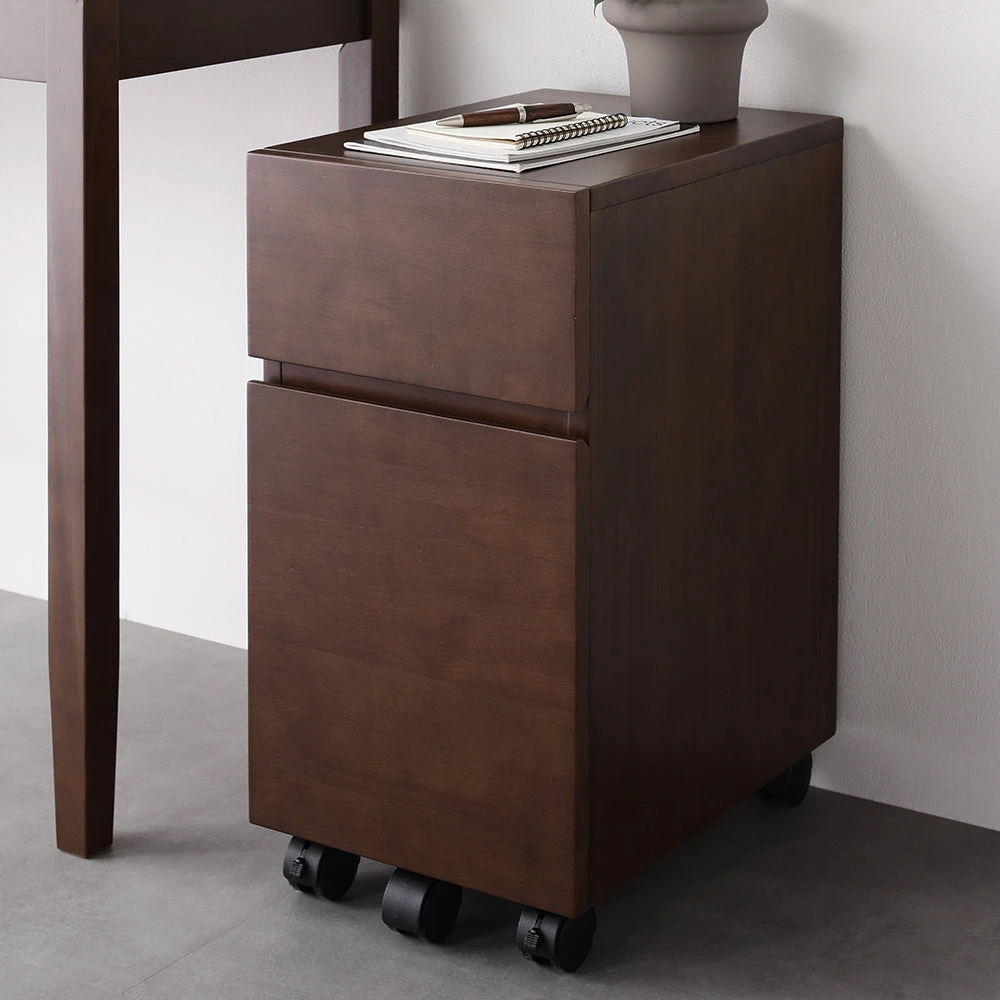 場所をとらず心地よく使えてサイズが選べる天然木デスク キャビネット単品 ブラウン