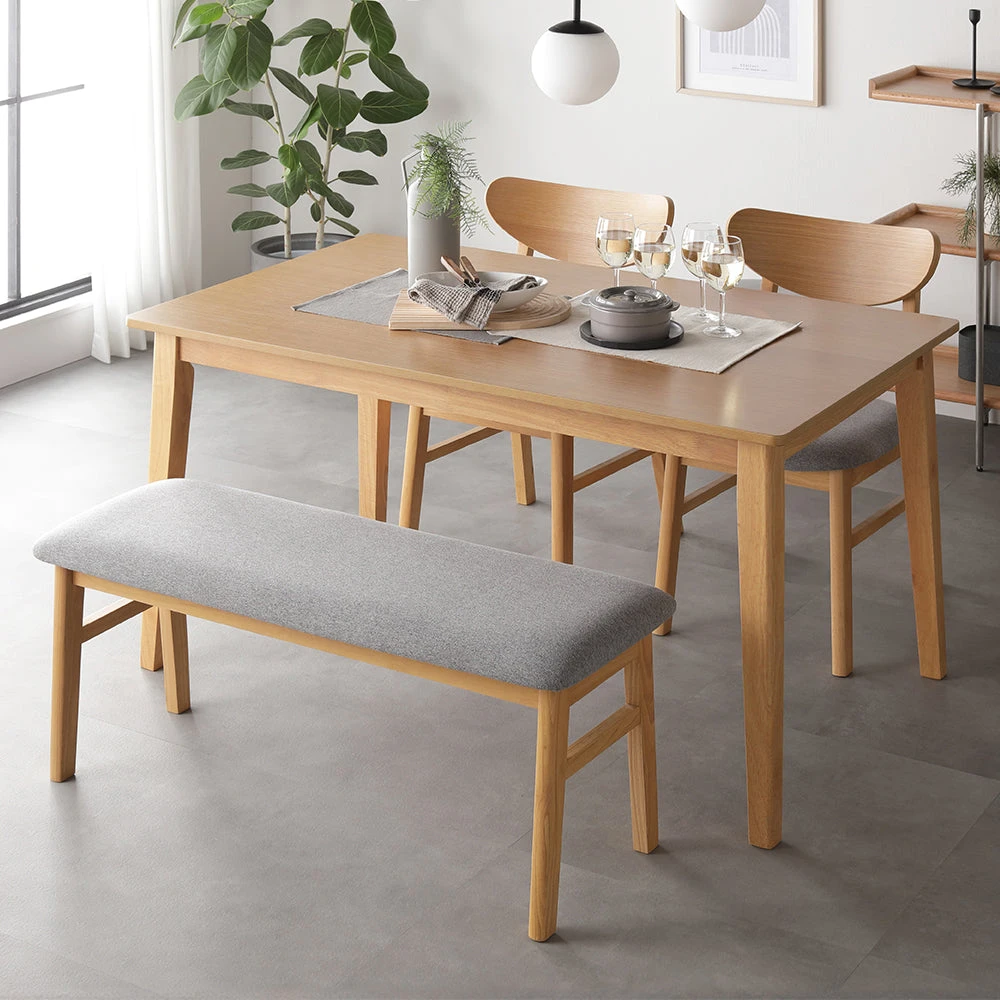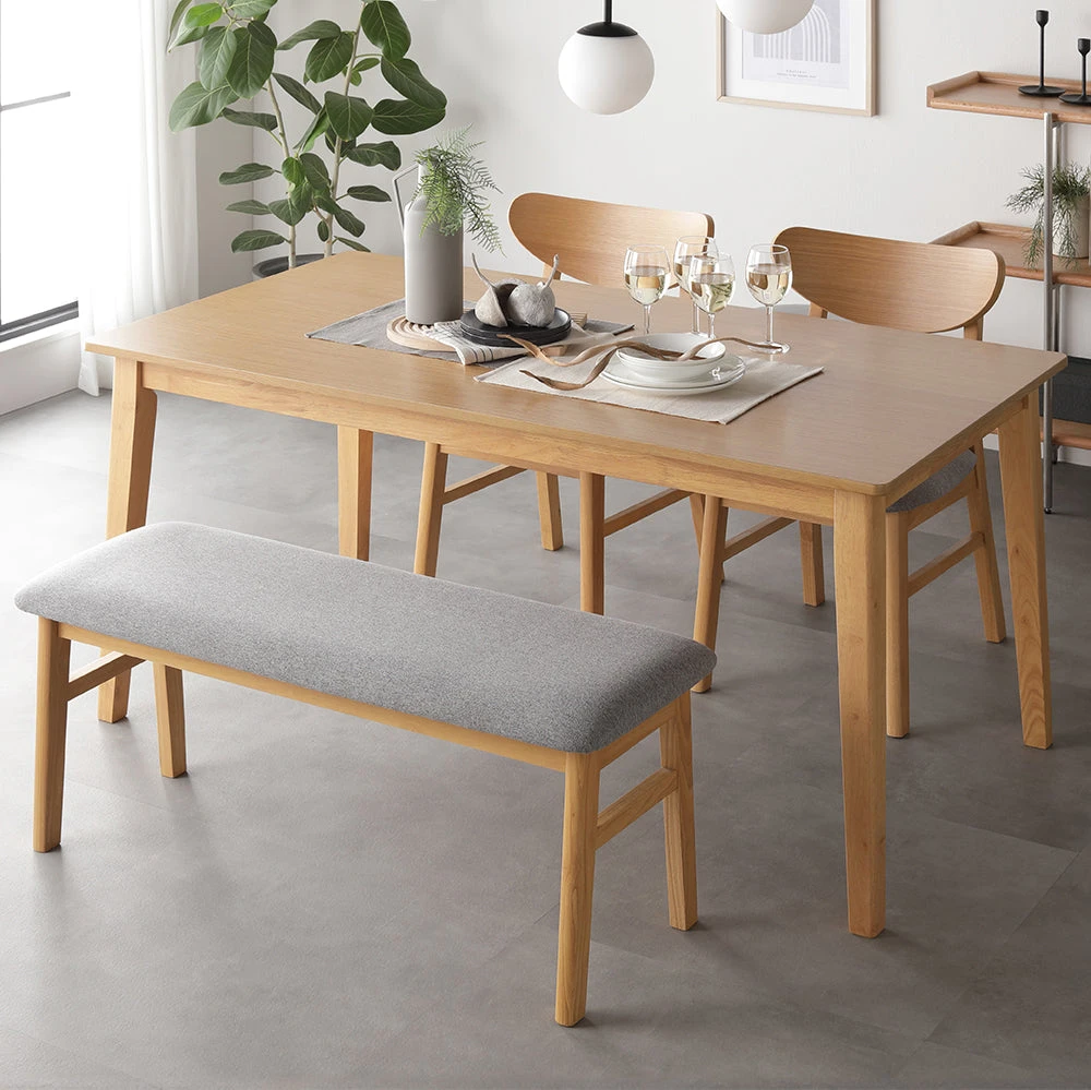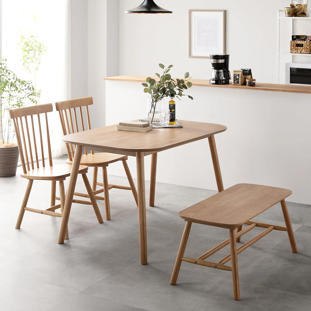 曲線の背もたれが包み込む、天然木の温もりを愉しむ北欧ダイニング ナチュラル 4点セット(テーブル幅120cm+チェア2脚+ベンチ)