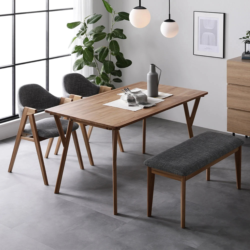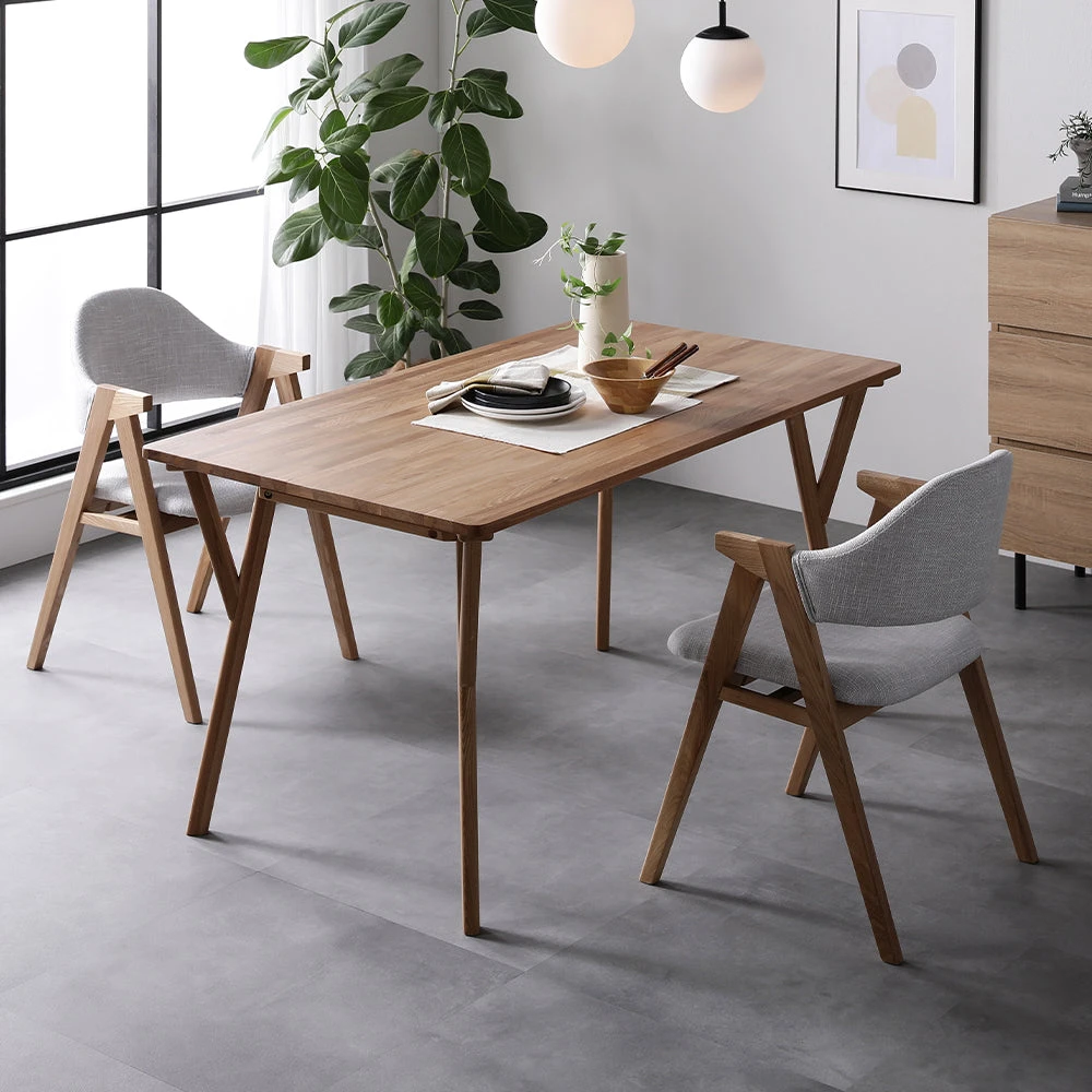 暮らしに馴染む質感が続く、天然木無垢の北欧ダイニング アッシュグレー 3点セット