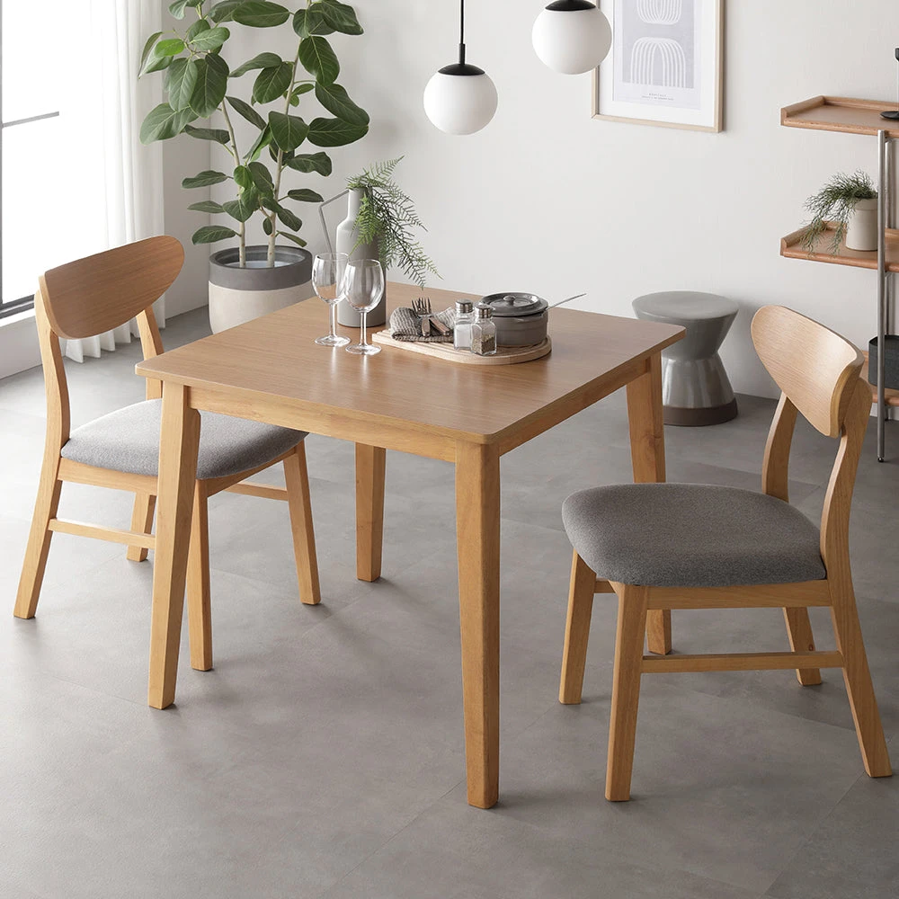 天然木の質感と直線美で空間に余白を生む北欧ダイニング ナチュラル 3点セット(幅80cm)