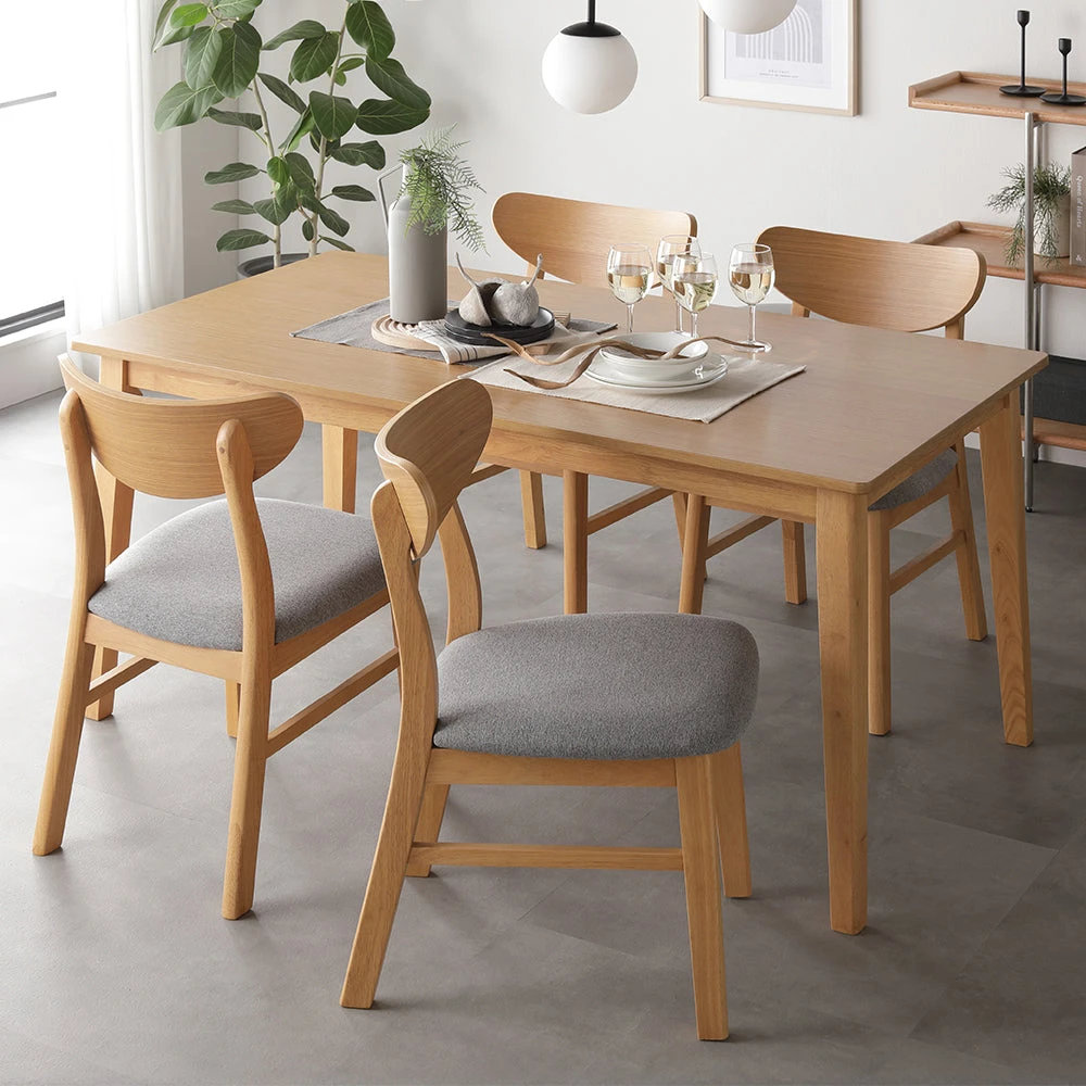 暮らしに馴染む質感が続く、天然木無垢の北欧ダイニング ライトグレー 5点セット