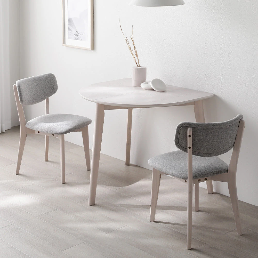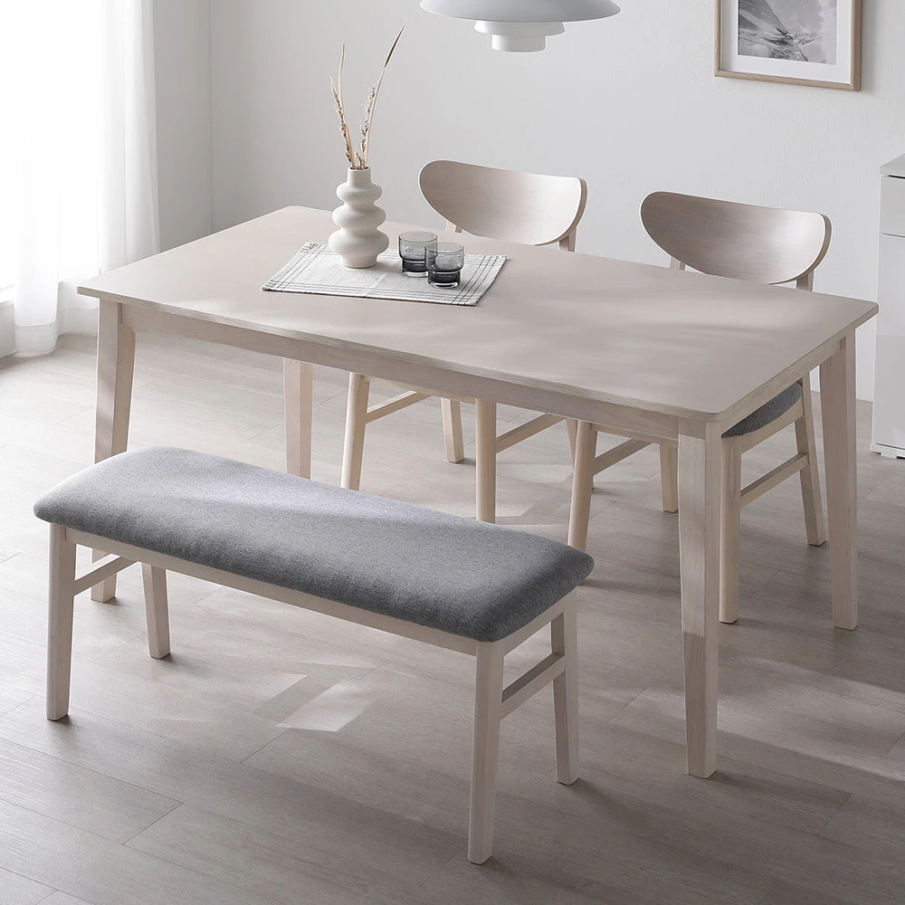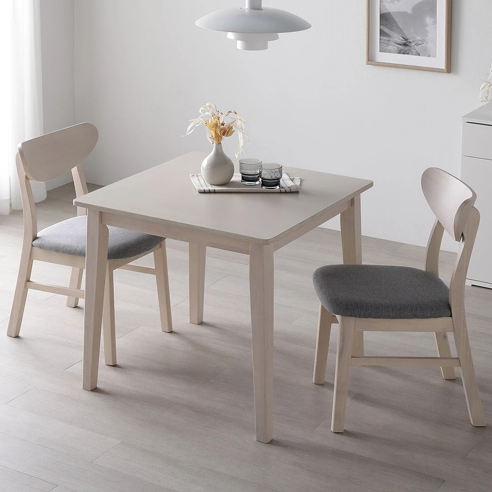暮らしに馴染む質感が続く、天然木無垢の北欧ダイニング ライトグレー 3点セット