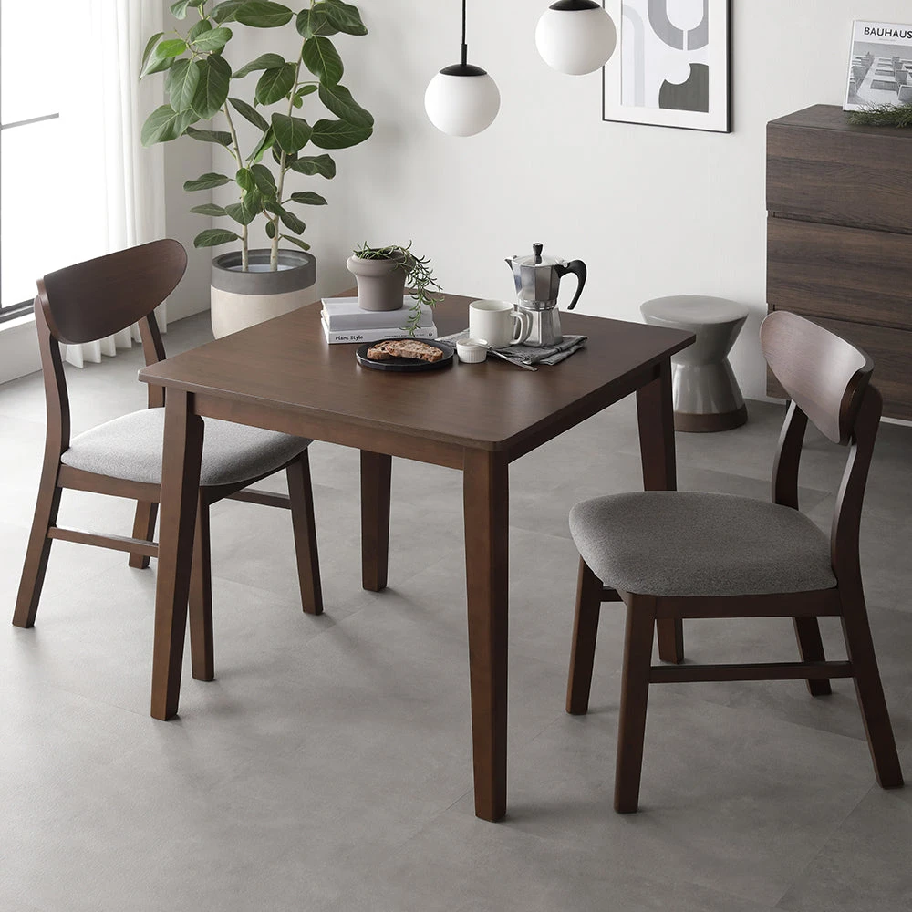 天然木の質感と直線美で空間に余白を生む北欧ダイニング ブラウン 3点セット(幅80cm)