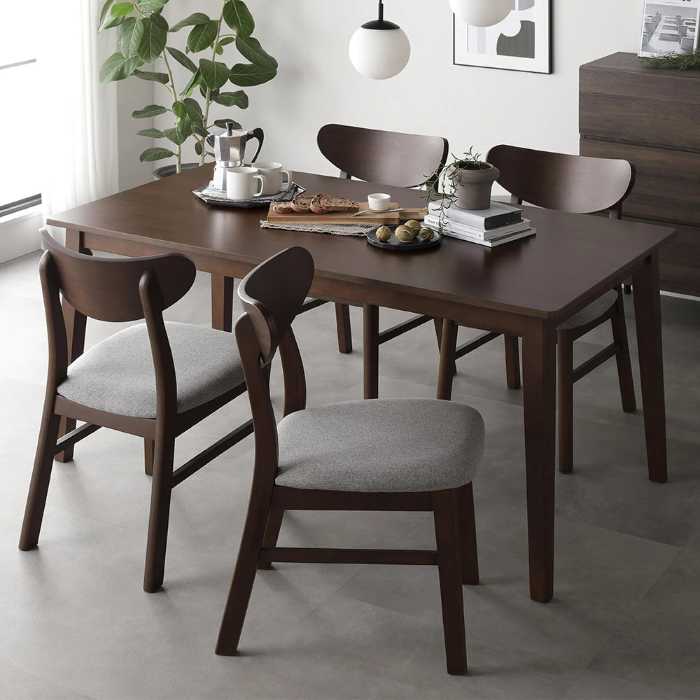 天然木の質感と直線美で空間に余白を生む北欧ダイニング ブラウン 4点セット(幅150cm)