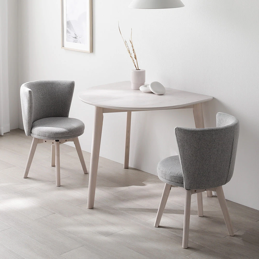 まるく囲んで会話が弾む、回転チェアが便利な北欧ダイニング ホワイト×ライトグレー 3点セット(変形テーブル+回転チェア2脚)