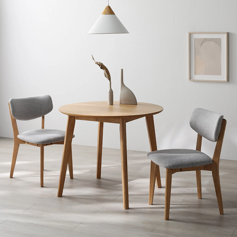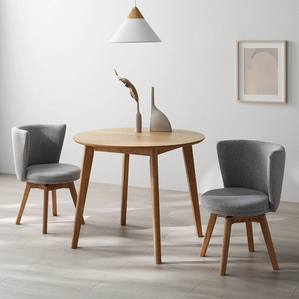 まるく囲んで会話が弾む、回転チェアが便利な北欧ダイニング ナチュラル×ライトグレー 3点セット(円形テーブル+レギュラーチェア2脚)