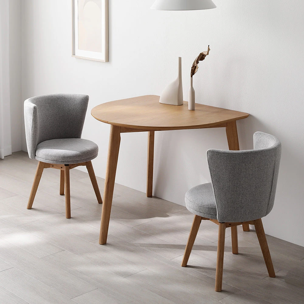 まるく囲んで会話が弾む、回転チェアが便利な北欧ダイニング ナチュラル×ライトグレー 3点セット(変形テーブル+回転チェア2脚)