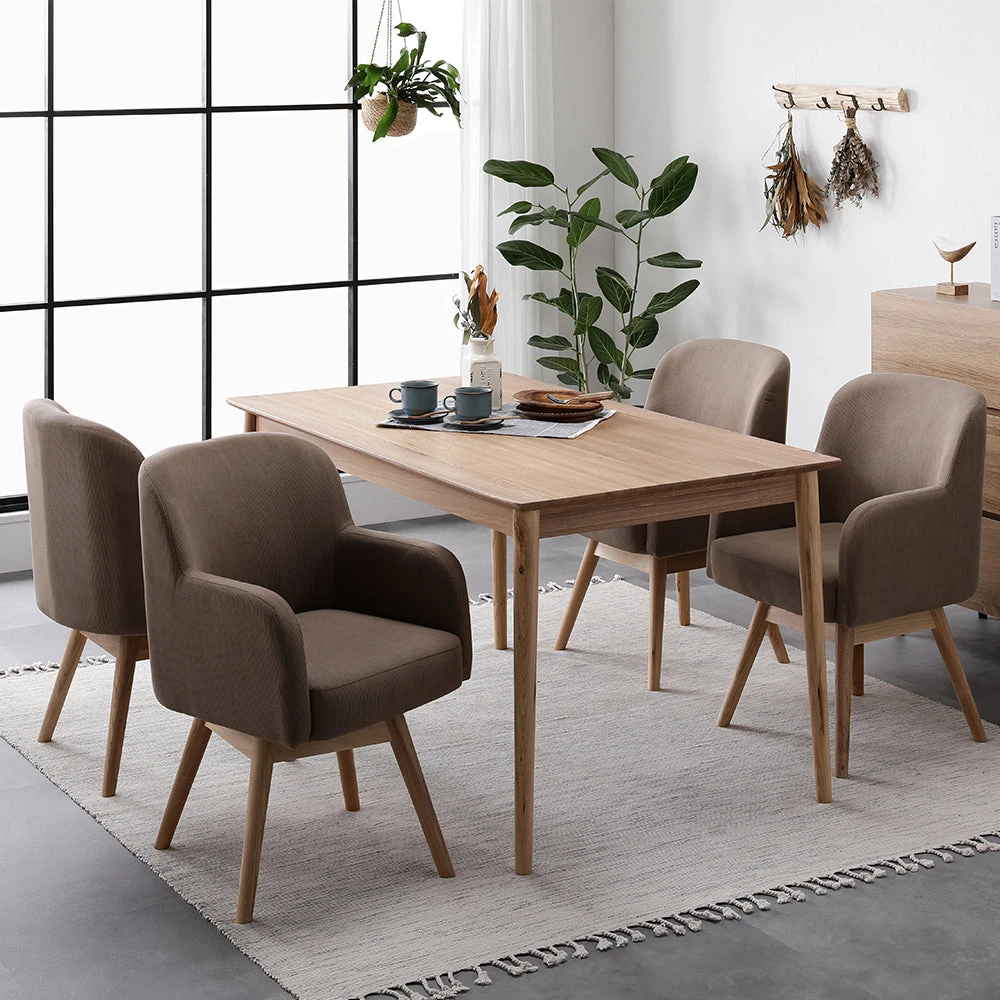 無垢材の温もりと回転チェアで日常がくつろぐ北欧ダイニング モカ 5点セット