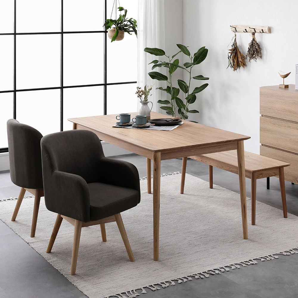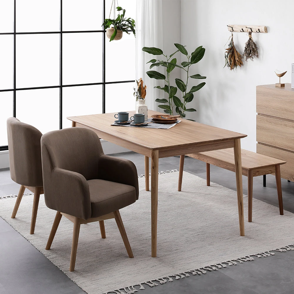 無垢材の温もりと回転チェアで日常がくつろぐ北欧ダイニング キャメル 3点セット