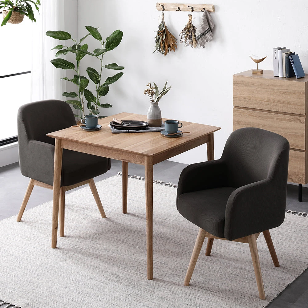 無垢材の温もりと回転チェアで日常がくつろぐ北欧ダイニング モカ 3点セット