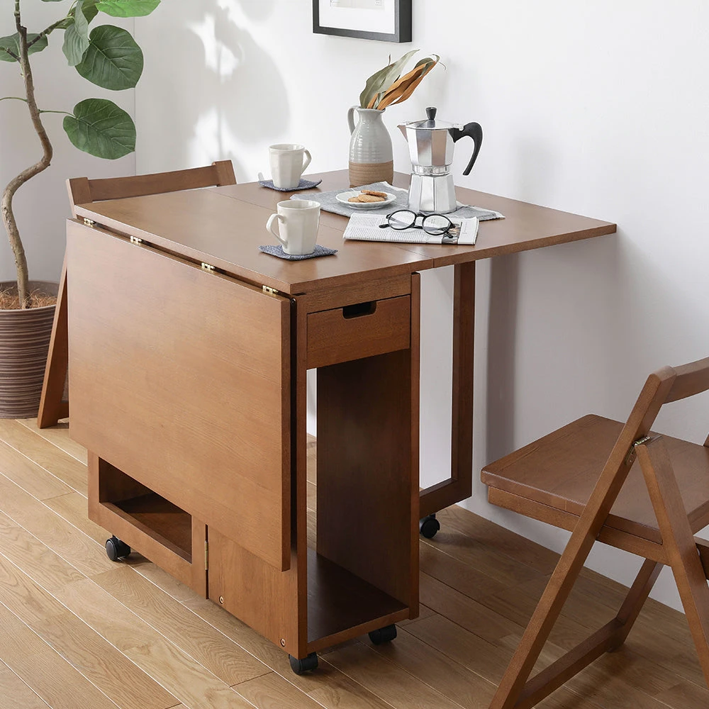 片付けやレイアウト替えがしやすい木製の北欧ダイニング ブラウン テーブル単品