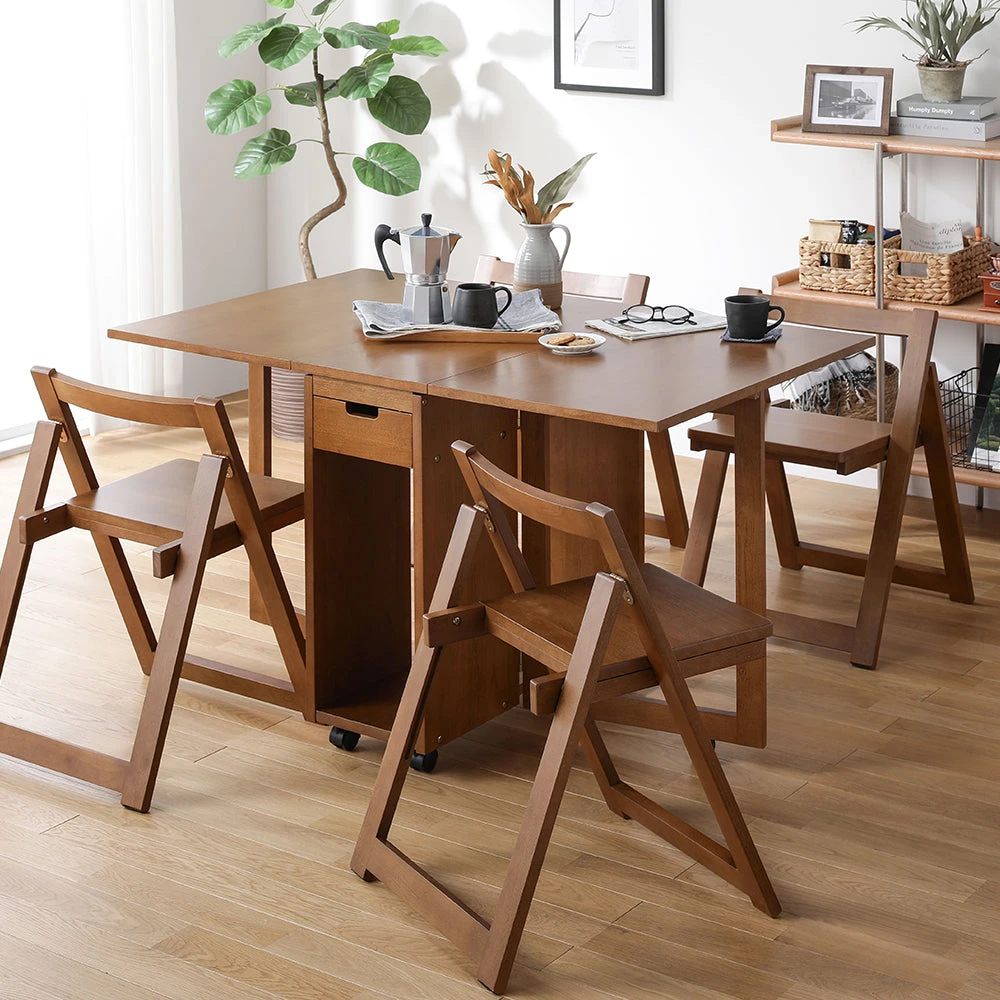 片付けやレイアウト替えがしやすい木製の北欧ダイニング ブラウン 5点セット(テーブル+チェア4脚)