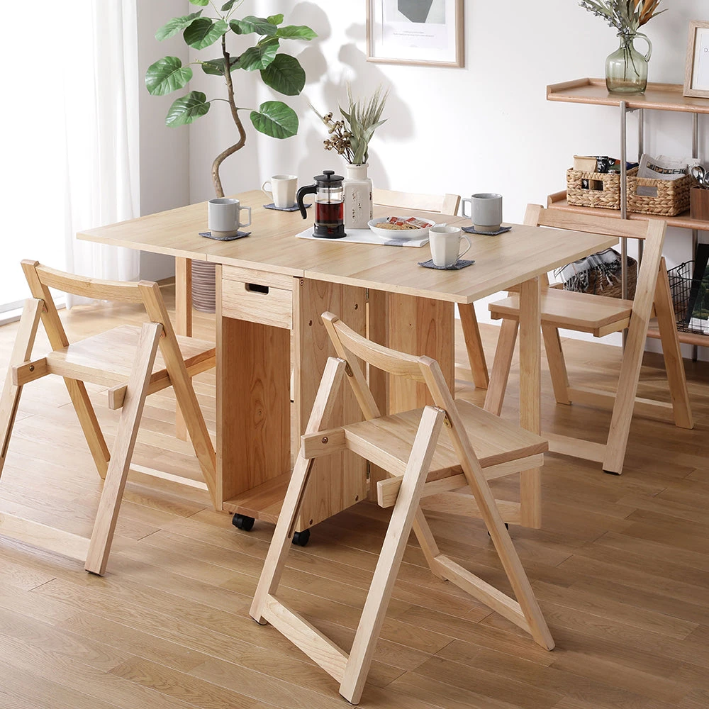片付けやレイアウト替えがしやすい木製の北欧ダイニング ナチュラル 5点セット(テーブル+チェア4脚)