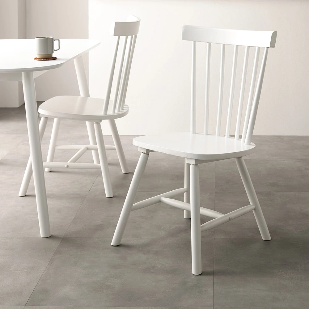 曲線の背もたれが包み込む、天然木の温もりを愉しむ北欧ダイニング ホワイト チェア 2脚セット