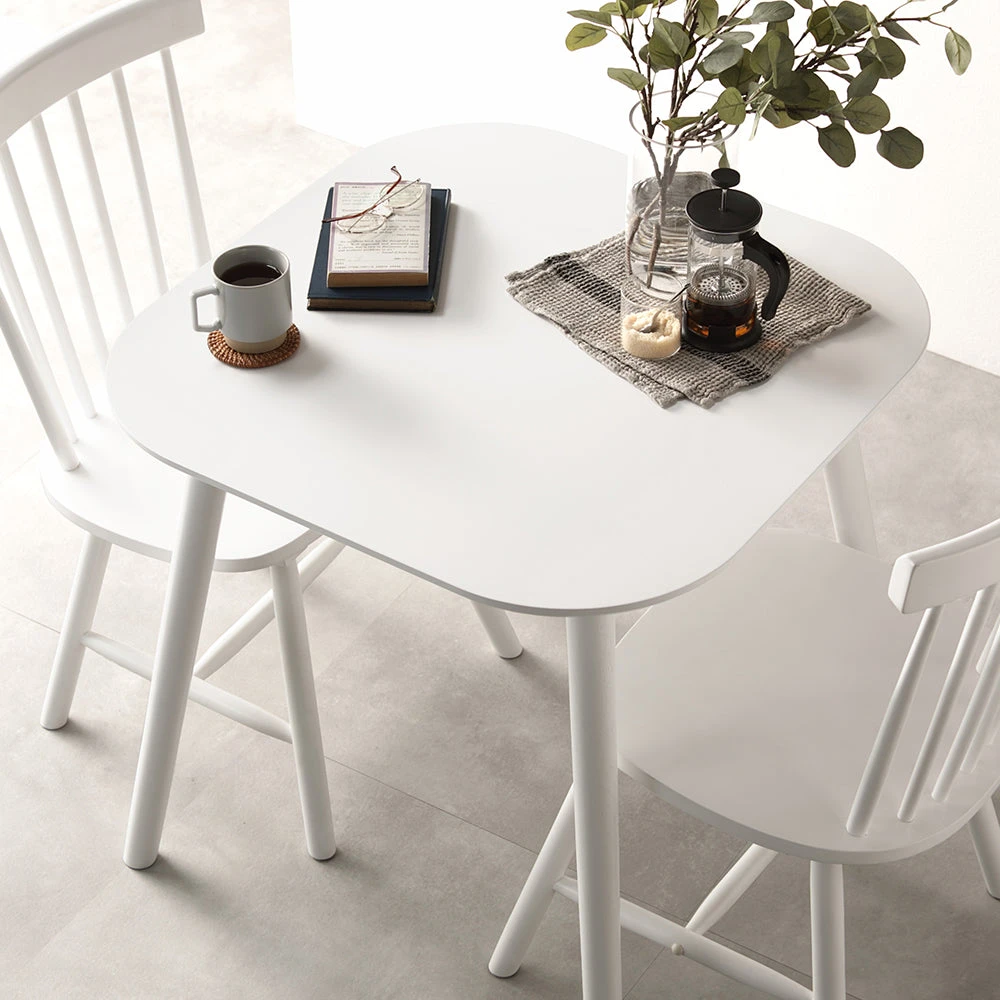 曲線の背もたれが包み込む、天然木の温もりを愉しむ北欧ダイニング ホワイト 3点セット(テーブル幅75cm+チェア2脚)