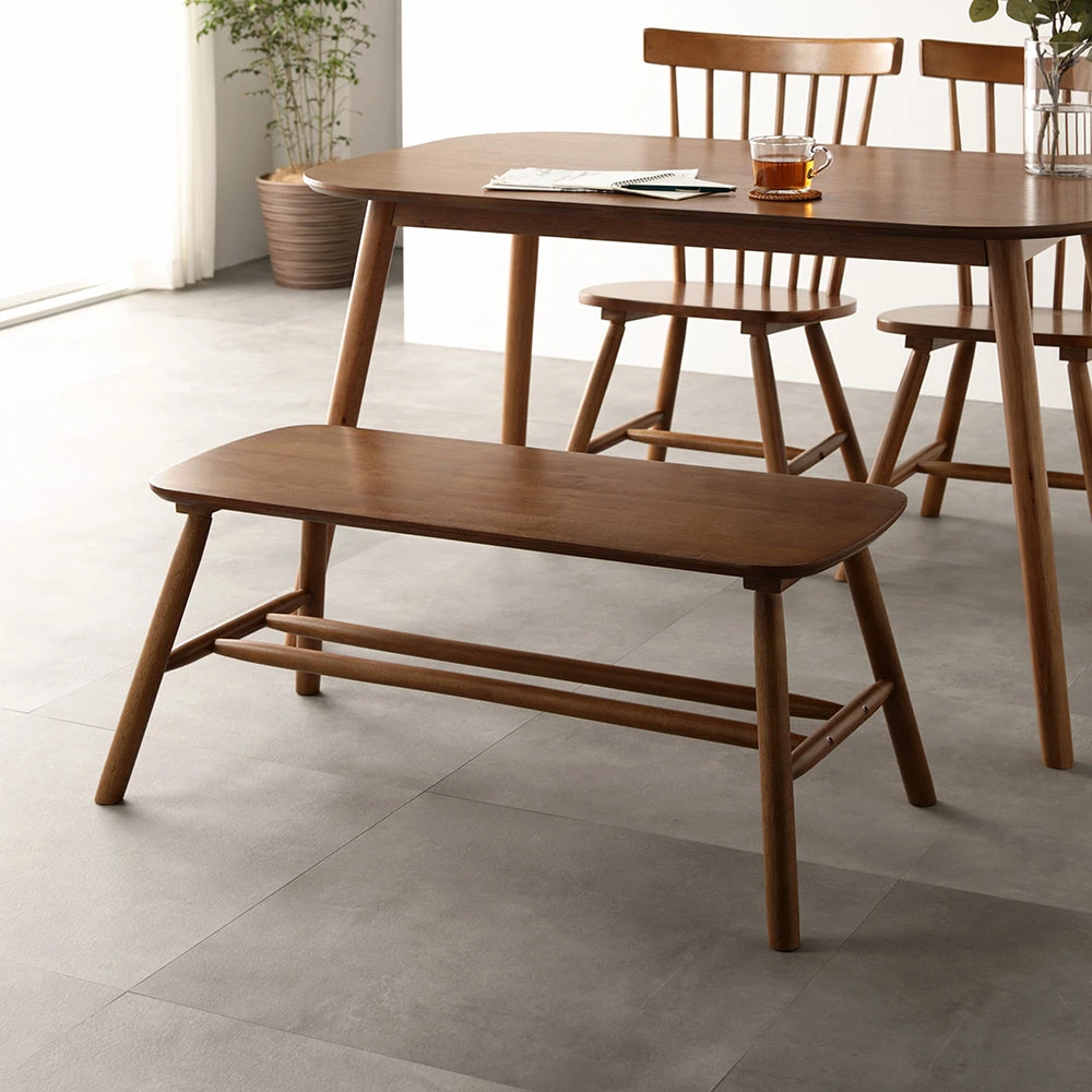 曲線の背もたれが包み込む、天然木の温もりを愉しむ北欧ダイニング ブラウン ベンチ単品 幅90cm