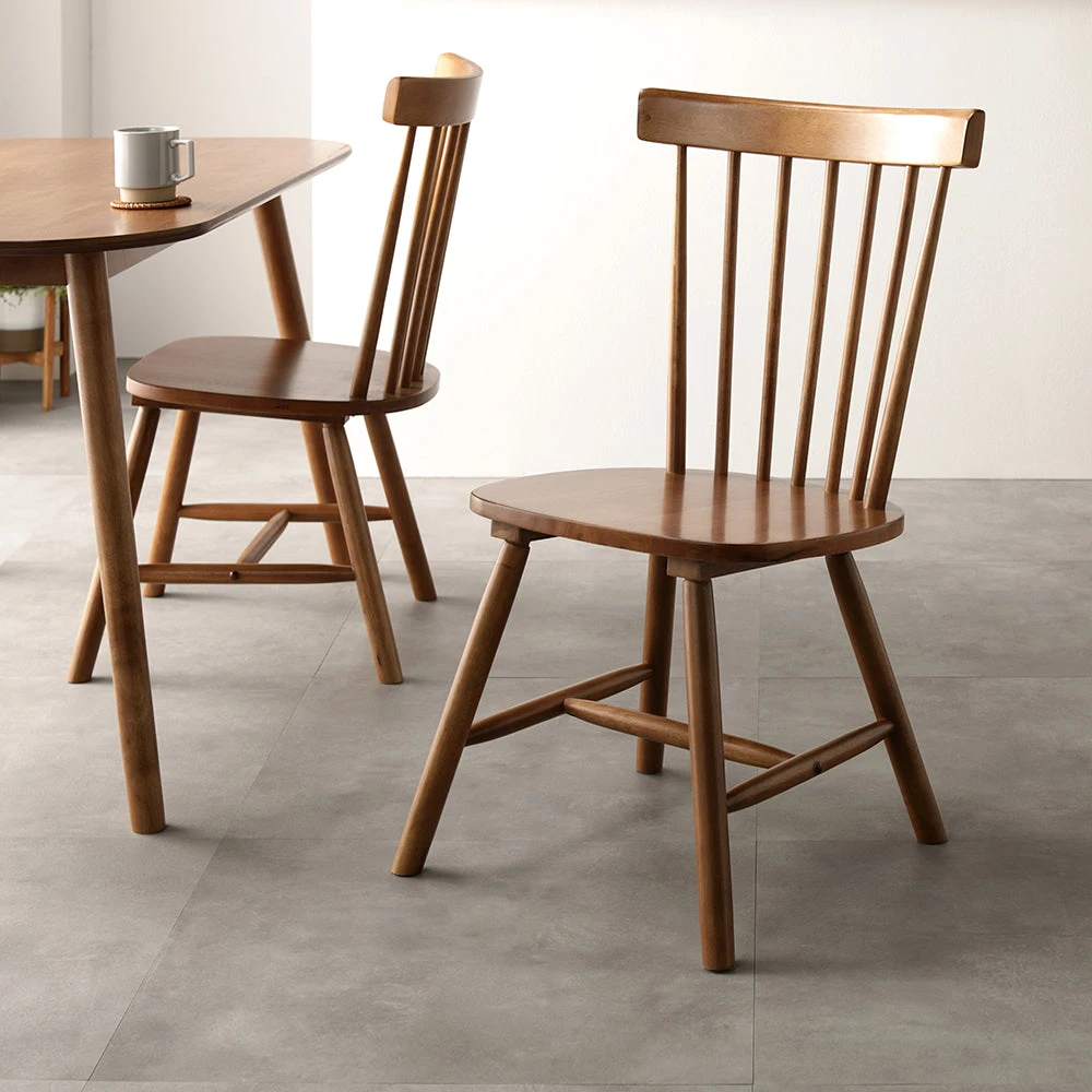 曲線の背もたれが包み込む、天然木の温もりを愉しむ北欧ダイニング ブラウン チェア 2脚セット