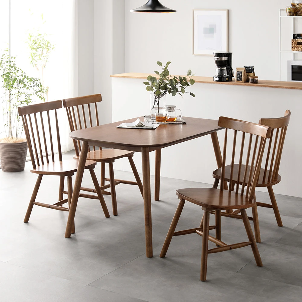 曲線の背もたれが包み込む、天然木の温もりを愉しむ北欧ダイニング ブラウン 5点セット(テーブル幅120cm+チェア4脚)